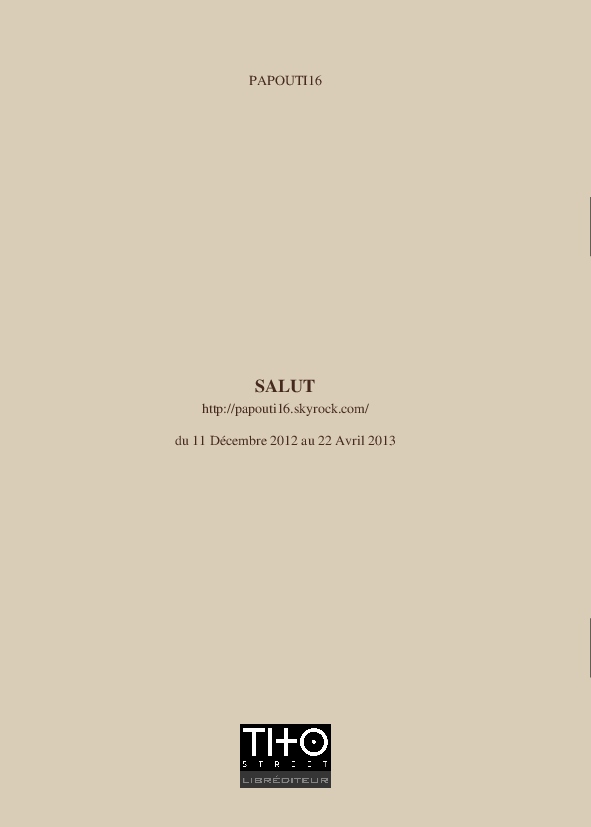 PAPOUTI16 made the blook of their their blog Skyrock ! Support their creativity by buying their blook or create your own now on BlookUp!