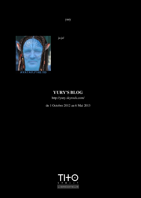 yury made the blook of their their blog Skyrock ! Support their creativity by buying their blook or create your own now on BlookUp!