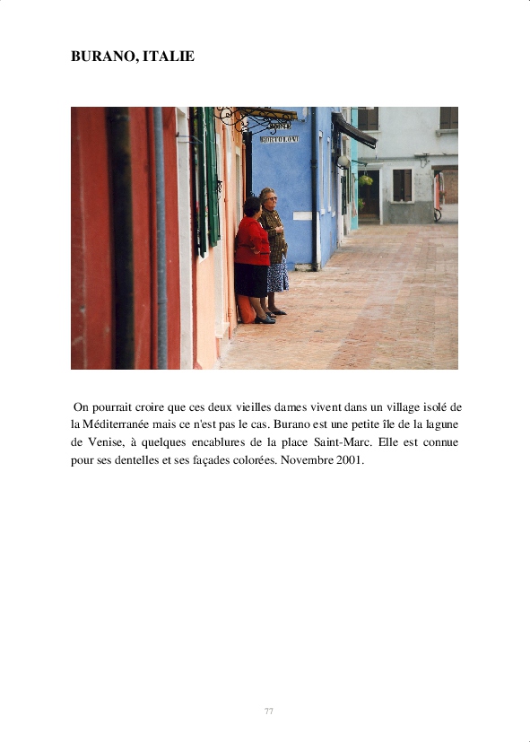 Tous les lieux du monde ont quelque chose en commun : les gens. Des gens différents avec des cultures différentes mais qui partagent tous l'humanité. Ce livre est une collection d'hommes et de femmes photographiés autour du monde depuis la fin des années 80. Certaines de ces photos ont été prises avant l'âge digital et sont des images argentiques scannées.
