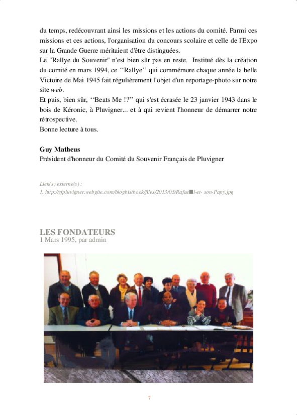 C’est par hasard qu’il a rencontré le général Roux en 1991, Délégué Général du Souvenir Français du Morbihan. Le général ayant été son instructeur en Algérie et son chef de corps en Allemagne, Guy Matheus a adhéré à la triple mission de l’association et accepté d’accéder à sa demande pressante.