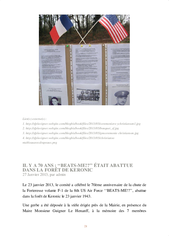 Parmi les temps forts : l’inauguration de la stèle "Beats Me !?" par nos amis américains, tous deux survivants du crash de cette forteresse volante dans la forêt de Keronic.