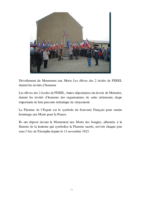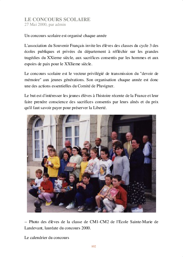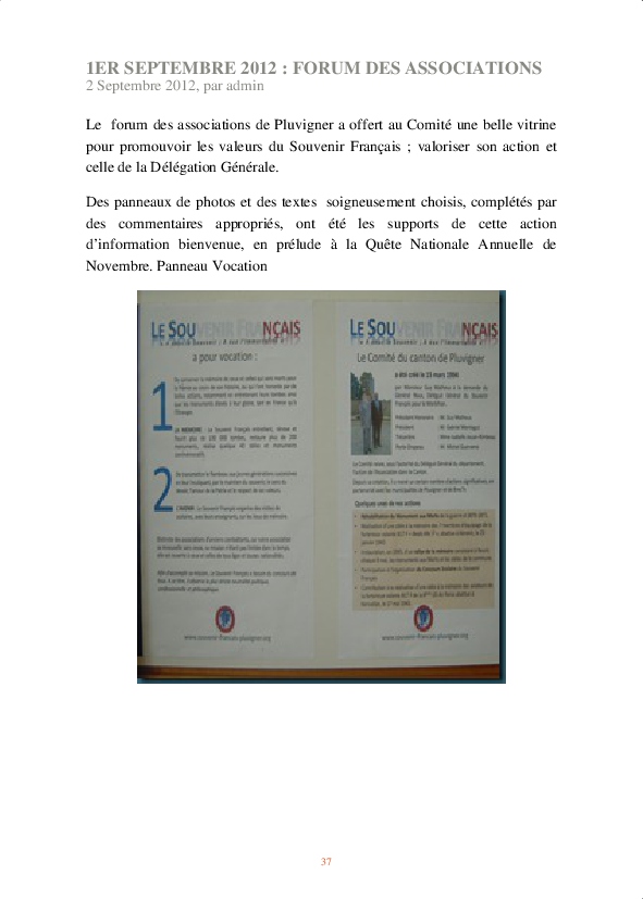 À partir de là, un certain nombre d’actions ont été menées : participation aux cérémonies commémoratives, réhabilitation du monument aux morts de la guerre de 1870, instauration d’un rallye du Souvenir, organisation d’expositions…