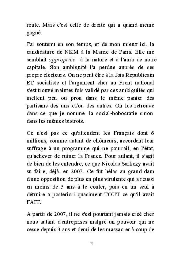 Dans mes "Annotations limousines". J'avais commencé par défendre Nicolas Sarkozy, que j'avais choisi. Comme Céleste Brume, j'ai ensuite résisté autant que j'ai pu à 5 ans de hollandisme pour finir vaincue par le marketing politique abject d'une campagne présidentielle infâme. Je ne me sens décidément plus de ce monde où plus rien de ce que j'ai à dire ne peut désormais être entendu.