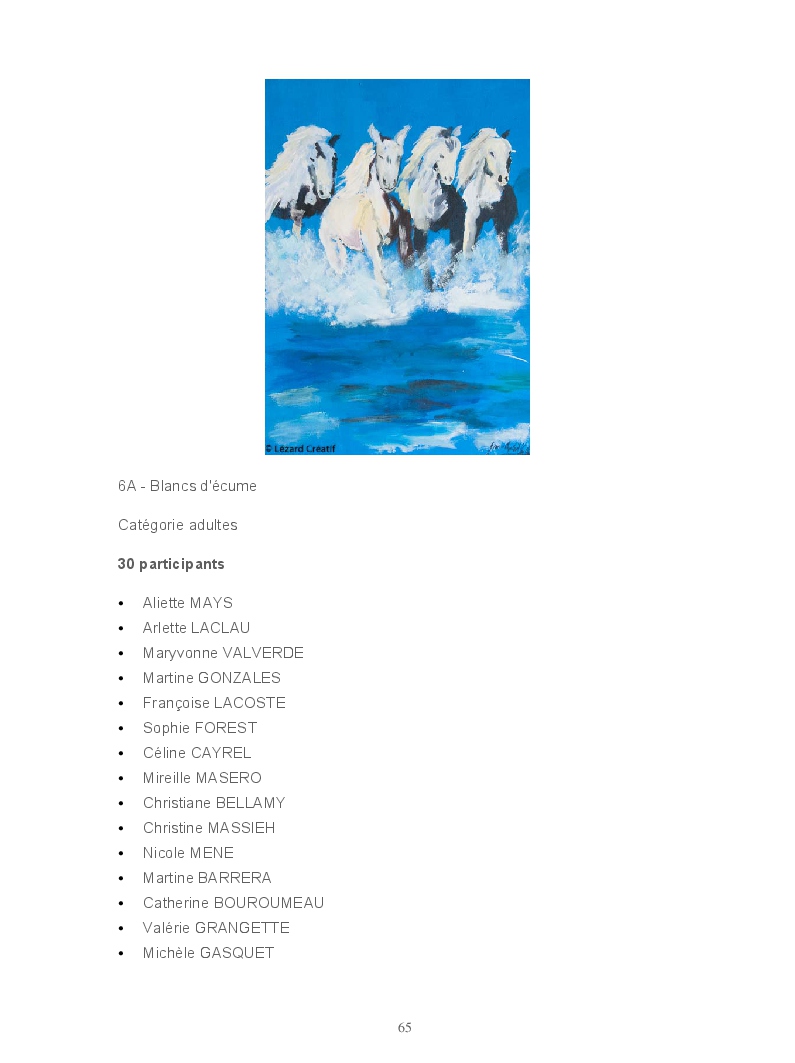 Chaque année après des moments de convivialité et de création, nos membres exposent. En 2015, 43 oeuvres ont été exposées au cinéma Jean Eustache, à la brasserie du Carré et au Lézard Créatif. Le public est venu nombreux pour voter. Vous trouverez dans ce livre toutes les oeuvres exposées, les résultats du vote du public et tous nos moments d'amitiés. Trois artistes : Claire POINTUD, Richerd FAIVRE MONZO, Philippe LAMBERT nous ont accompagnés et ont témoignés de la qualité de l'exposition et des oeuvres réalisées. Un grand merci à tous.