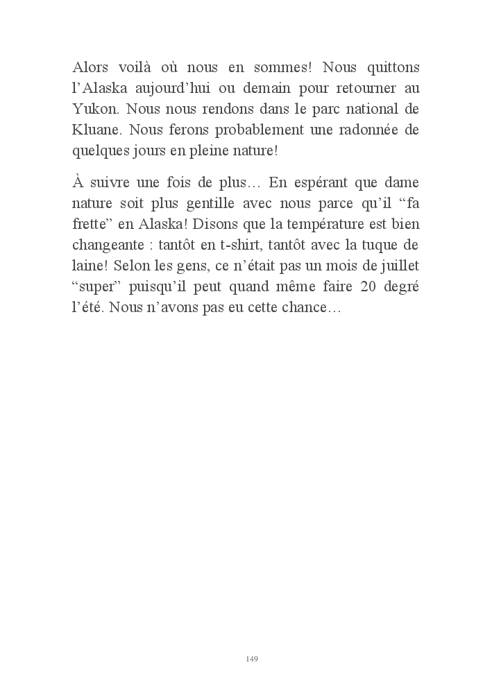 Ce premier tome retrace les aventures à partir des Îles-de-la-Madeleine jusqu'au États-Unis, en Californie. Des Îles à la Californie, en traversant d'abord les provinces du Canada, le territoire du Yukon et l'Alaska! Au programme : la mer, les parcs nationaux, les sites historiques, l'observation des animaux, les montagnes, la ruée vers l'or, les glaciers, la neige et le soleil!