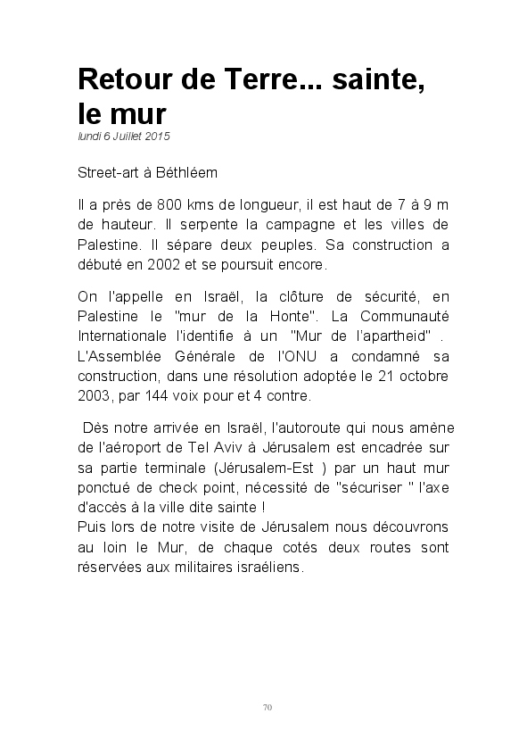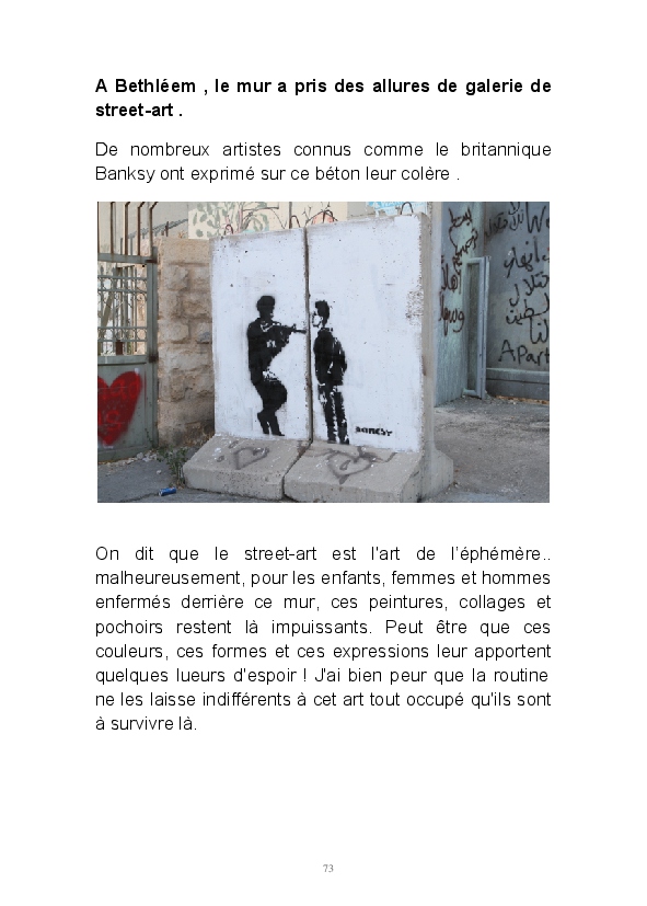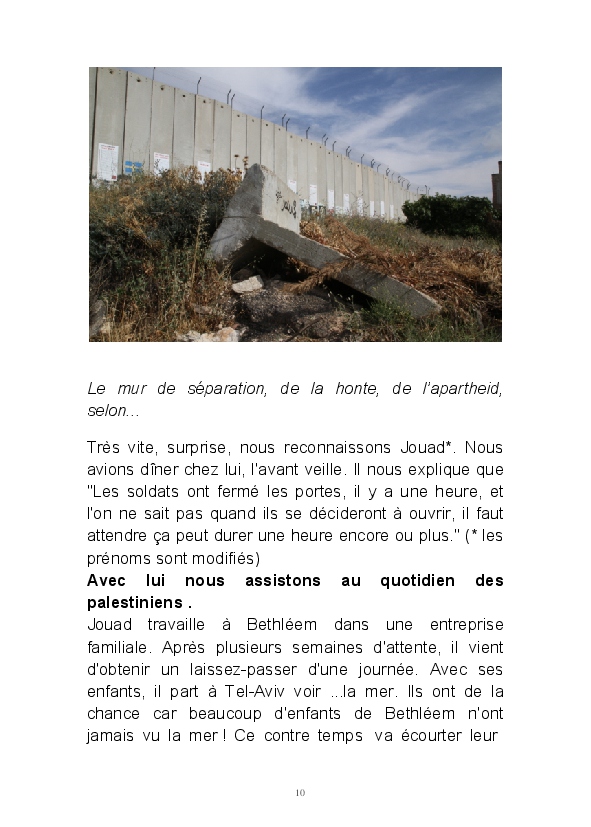 Bravant quelques inquiétudes, nous nous sommes inscrits à ce voyage intitulé "Mieux comprendre la Palestine". Nous voulions nous faire une opinion par nous même. Pendant 7 jours nous avons eu la chance d'écouter, de voir, de photographier et "un peu" de partager le quotidien des palestiniens. Les articles que j'ai repris dans ce blook retracent les moments les plus forts de ce voyage. J'ai voulu montrer comment nos amis de rencontre agissaient et espéraient encore grâce à l'éducation des jeunes.