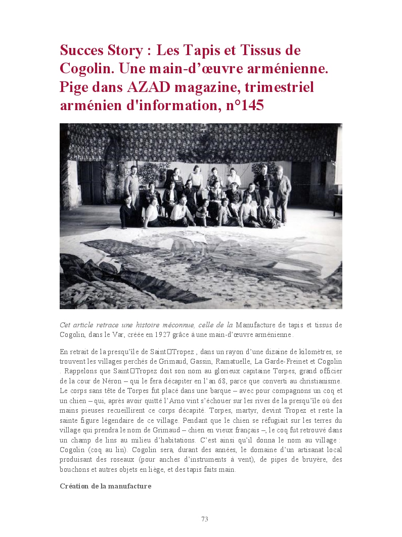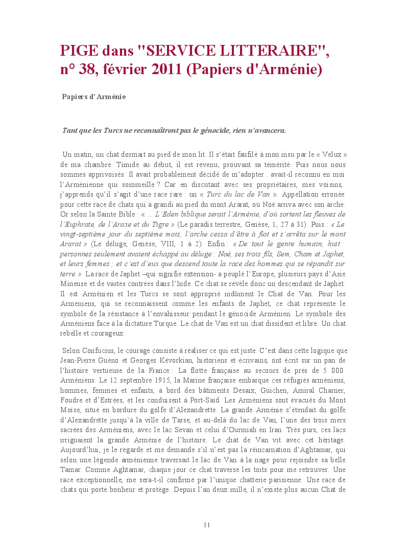 Cet ouvrage reprend une sélection des chroniques rédigées notamment pour "Service Littéraire", mensuel de l'actualité romanesque, et "Azad magazine", trimestriel arménien d'information, pour lesquels elle collabore respectivement depuis 2008 et 2013.