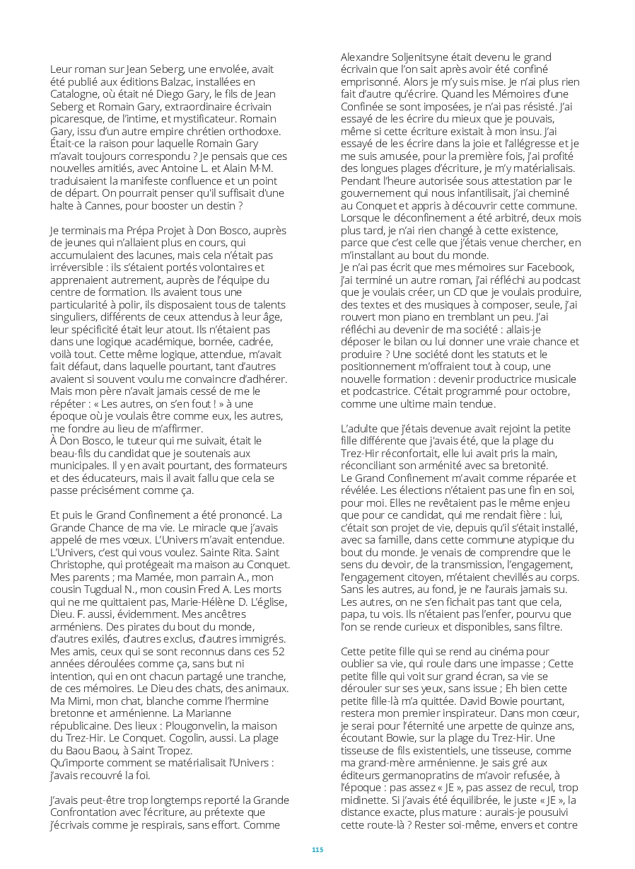 17 Mars 2020. Le confinement est décrété, conséquence du Grand Virus planétaire. L’auteur, qui vient d’emménager au bout du monde pour écrire, se souvient d’autres confinement. Née sous le signe du confinement, celui-ci, historique, est l’occasion de se livrer et de découvrir cette nouvelle maison, située au premier numéro de la dernière rue du port de pêche, à l’extrême pointe occidentale. Un témoignage intime et personnel, sensible et authentique, comme cette fin de terre, lieu de tous les déconfinenements.