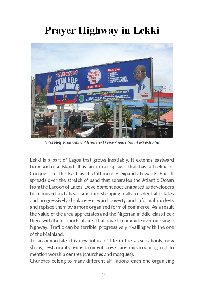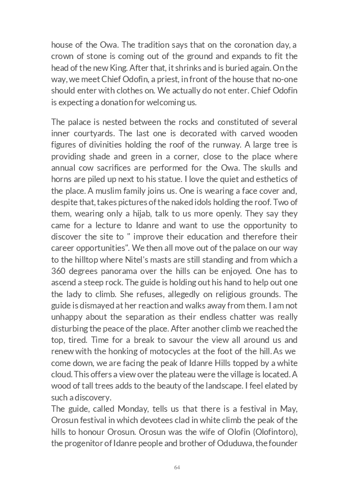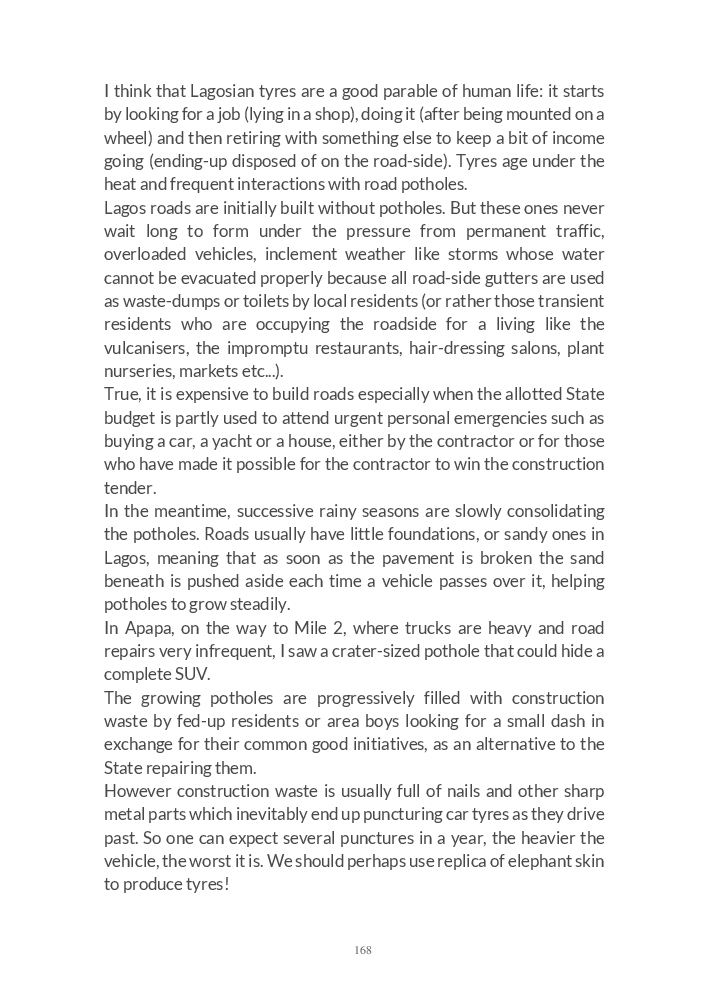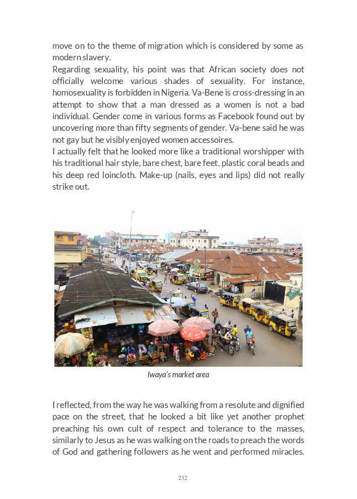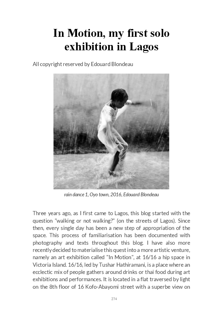 This is the third volume of the blog Nigeria, the land of plenty. It captures the last part of the discovery of Nigeria. It revisits some of the recurring events of the previous years and covers new regions like Edo state, Jos, Abuja, Badagry but also offers stories lived from the inside about daily life in Lagos.