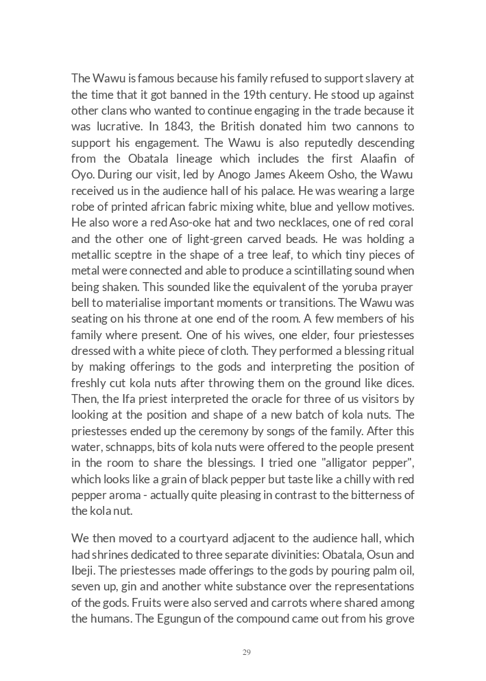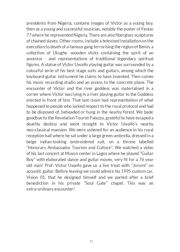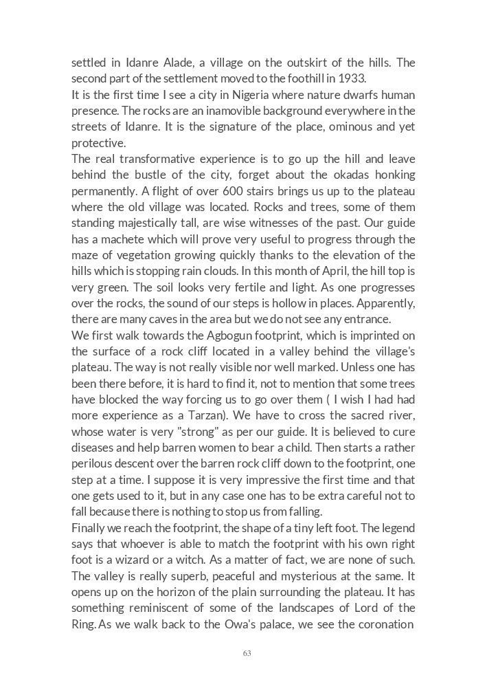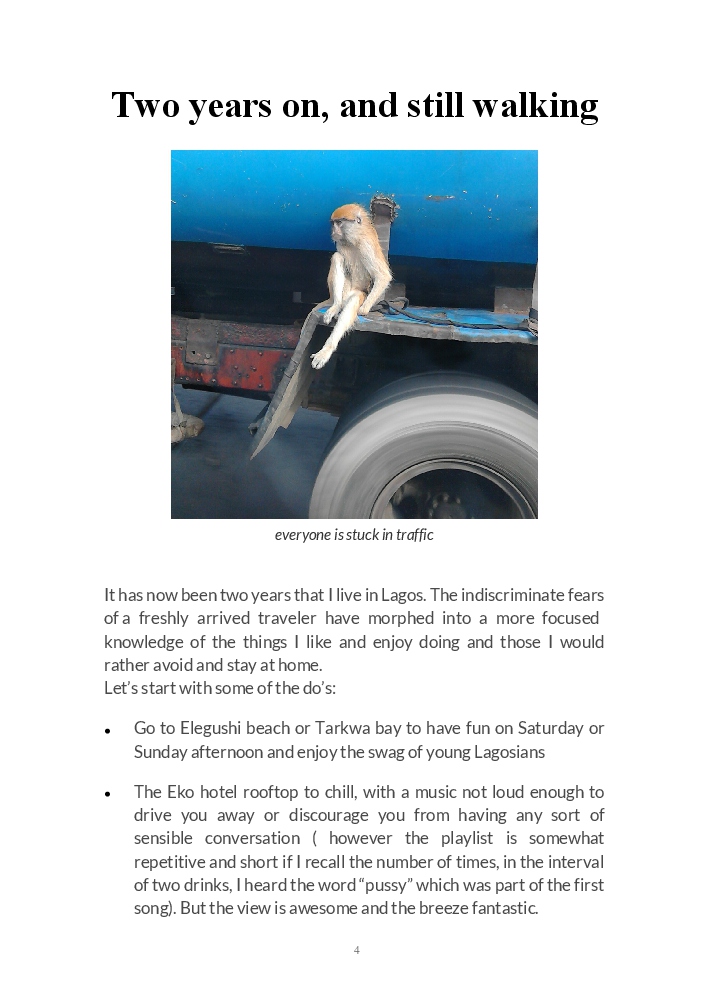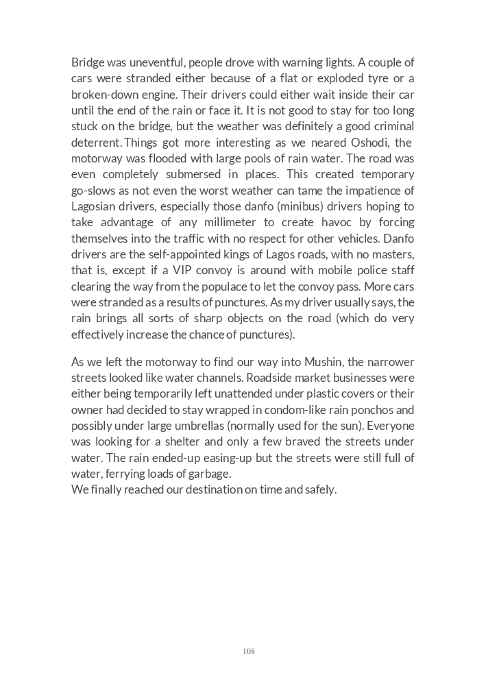 This is the third volume of the blog Nigeria, the land of plenty. It captures the last part of the discovery of Nigeria. It revisits some of the recurring events of the previous years and covers new regions like Edo state, Jos, Abuja, Badagry but also offers stories lived from the inside about daily life in Lagos.