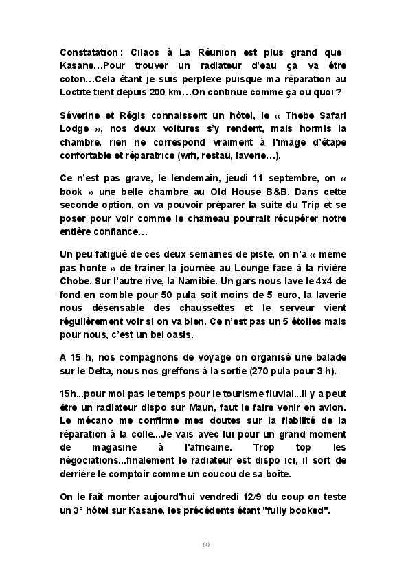 L'histoire d'un grand circuit de plus de 11 000 kms au Botswana, au Swaziland, au Lesotho et en Afrique du Sud en mai et juin 2014.