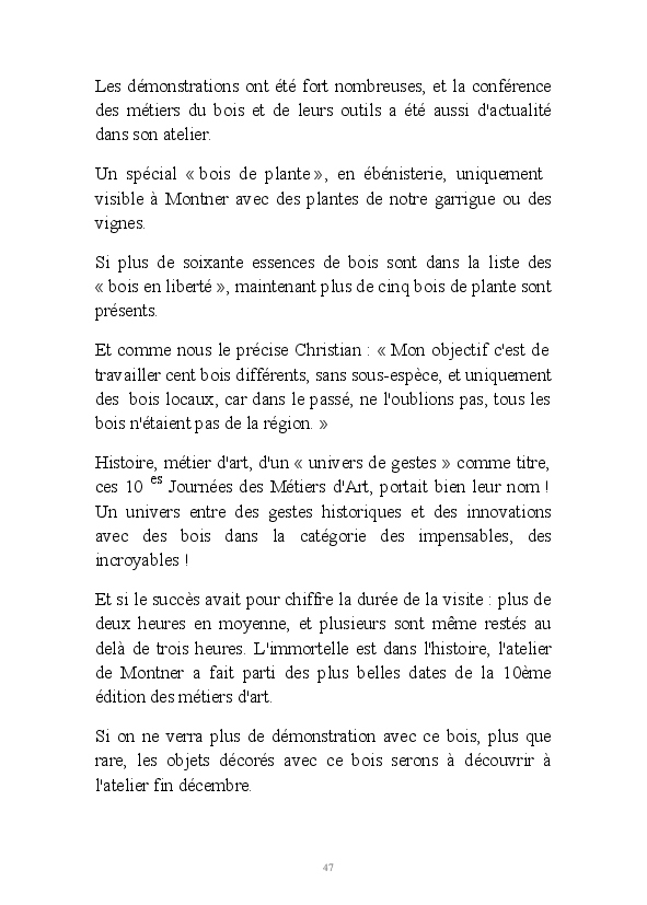 D'une première expérience, passée inaperçue, à la reconnaissance médiatique, le parcours de Christian Séguié, menuisier d'art, au travers de quelques expositions et leur succès.