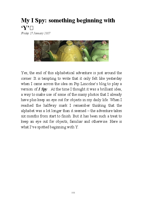 It was great fun, started on a whimsical prompt in someone else's blog post, and it saw me look at the world around me in a different way.