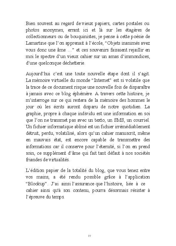 C'est l'histoire d'une quête impossible, faite de rebondissements. Cinquante années passées, avec un secret espoir de retrouver un jour, le « Cahier ».