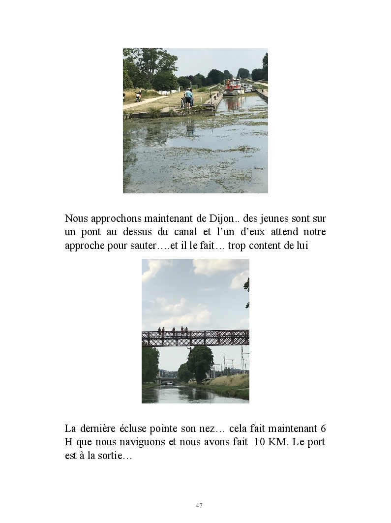 - 1 : la navigation sur la petite Saône durant 2 à 3 jours, de Pont de Vaux à l’entrée du canal de Bourgogne. 117 KM, 4 écluses