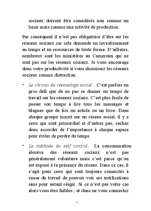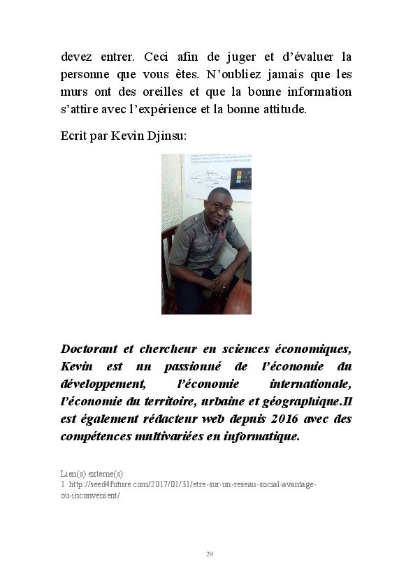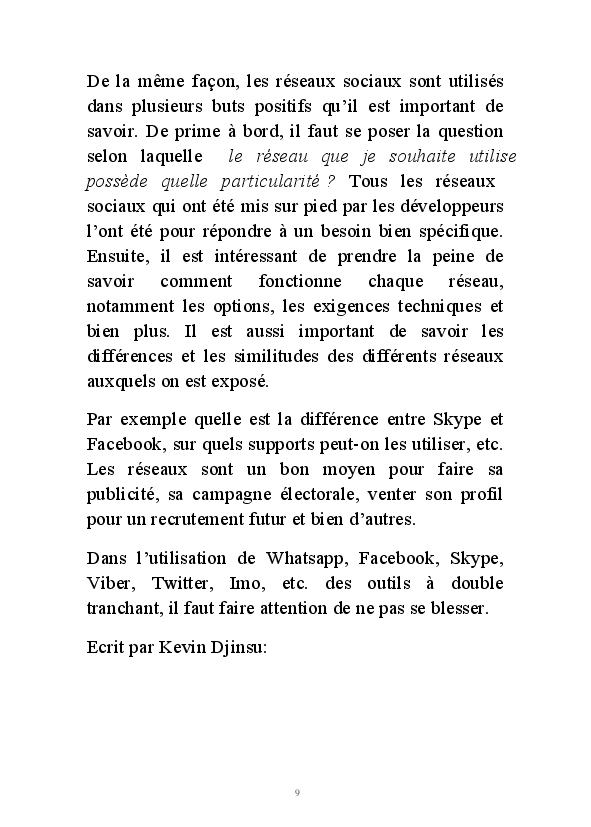 "La révolution digitale est encore loin de révéler ses secrets et ses surprises. Certains s'y aventure par mimétisme et d'autres pour des raisons professionnelles. Il est temps d'informer et d’éduquer les internautes et les futurs internautes sur la gestion équilibrée des réseaux sociaux: Tel est l'objectif de cet ouvrage qui condense 8 articles sur les réalités des réseaux sociaux de notre ère. Ce premier pas est exploratoire et les auteurs, ainsi que l’éditeur compte bien approfondir le sujet au fur et à mesure que la puissance du digital prend de l'ampleur." Hervé-Boris Ngaté