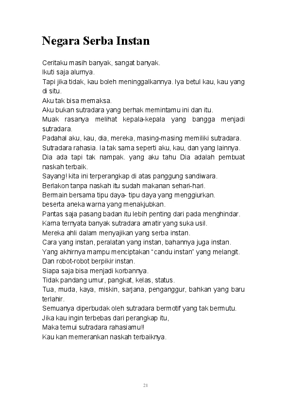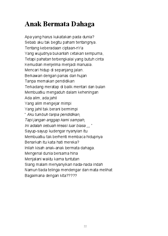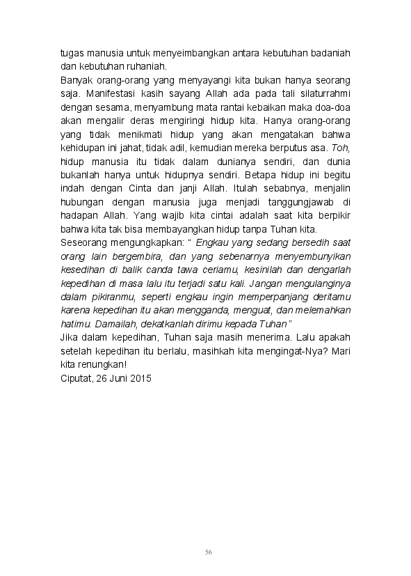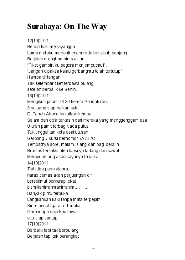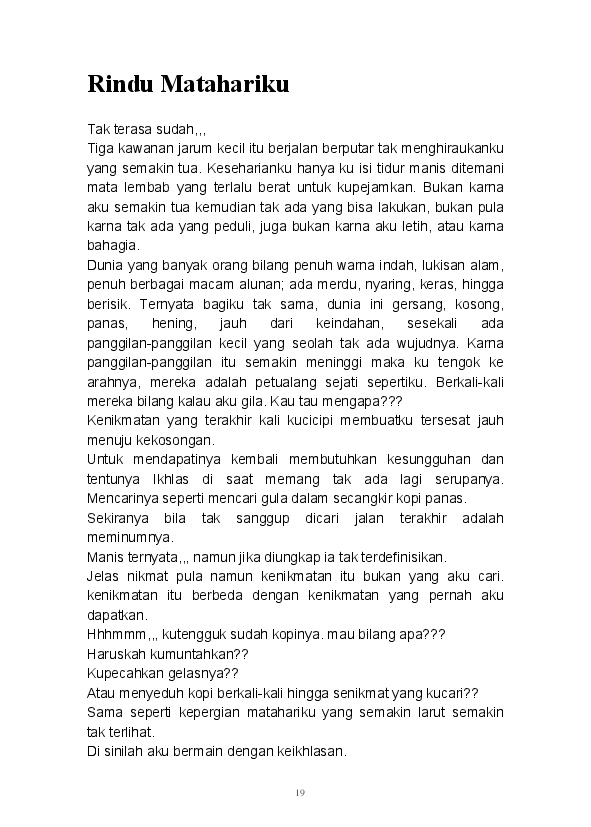Tidak ada yang lebih istimewa selain mampu menuangkan seluruh ide dan pikiran dalam tulisan. Begitu pula tulisan-tulisan yang ada dalam buku ini merupakan rangkaian dari kata seorang pembelajar. Buku ini merupakan kumpulan dari beberapa kategori yang ada di blog mulai dari Sastra, Analisa, Filsafat, Gender, Refleksi, hingga Tokoh tertuang di sini.