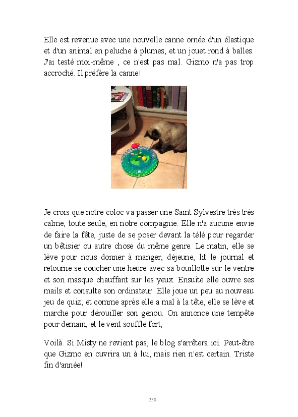 La suite des aventures de Misty, et peut-être la fin. Misty a disparu de sa maison le 20 novembre 2017, sans laisser de traces. Ses colocataires Bouboule et Gizmo , et son humaine de compagnie l'attendent toujours, en espérant qu'elle reviendra continuer son blog.