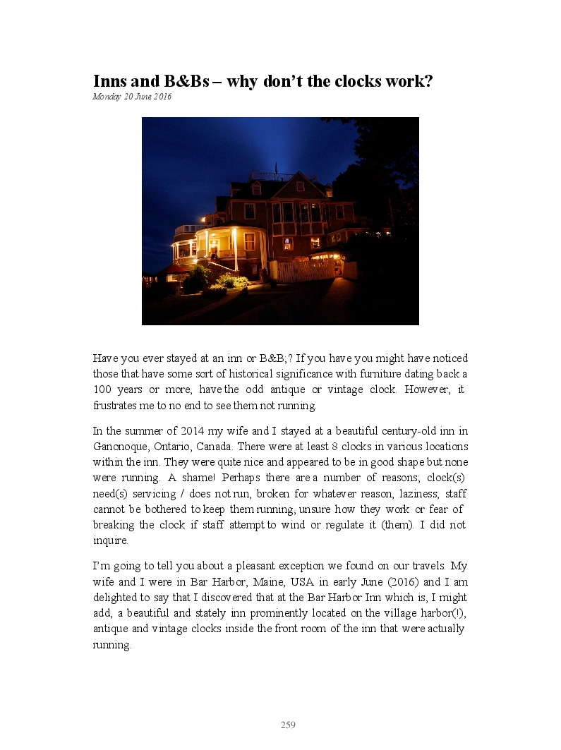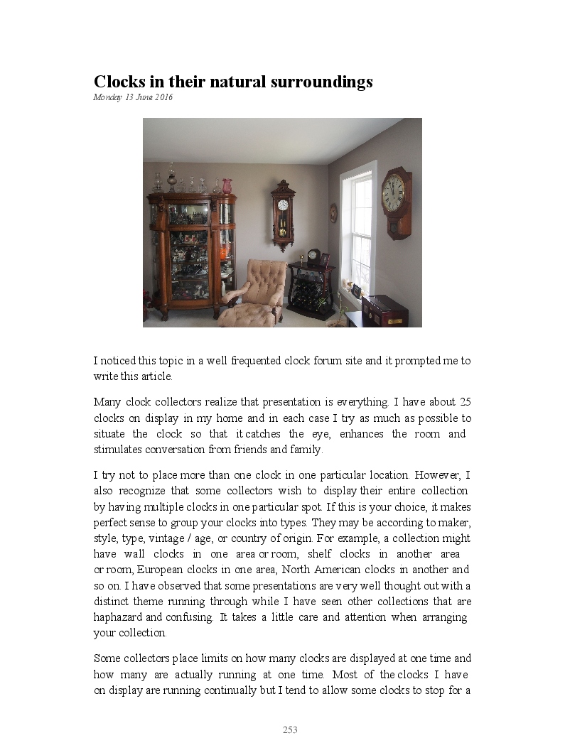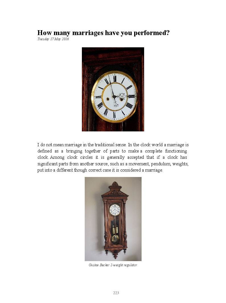 Clock collecting and repair from a hobbyist's perspective. This book is a collection of blog articles on various clocks of all shapes and sizes and profiles antique and vintage mechanical clocks.