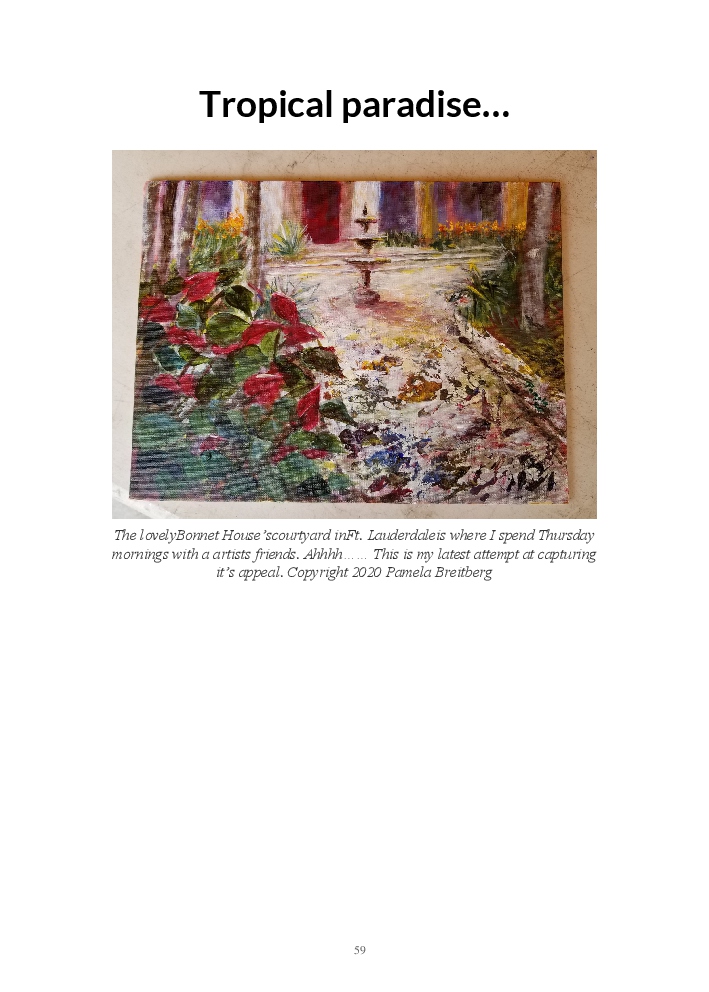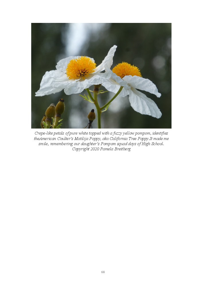 Pamela Ruth Drews Breitberg combines her love of nature, people, places in her photography and artwork. For ten years she has shared her words and works with people around the world in an effort to make them more aware of the Miracles in their everyday lives.