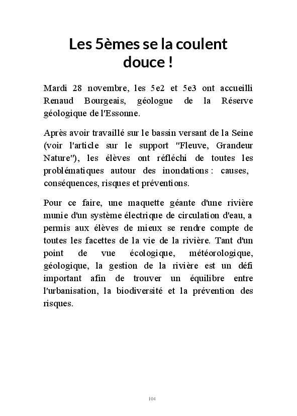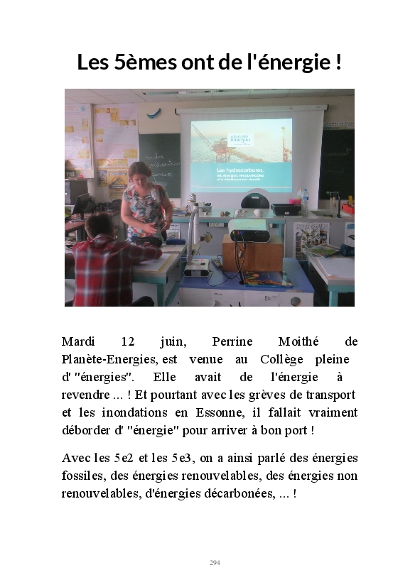 2017 / 2018 : deuxième année au cours de laquelle chaque professeur de Sciences, au Collège Jean Zay de Morsang s/Orge, s’occupe d’une classe de 6ème pour enseigner aux élèves toutes les SCIENCES. Cette année, trois classes de 6e ont développé une action éducative intitulée « Prenez-en de la graine » qui s’est déclinée sur l’Alimentation (manger mieux) et les Déchets (recyclage des emballages). De nombreux partenaires ont permis d’approfondir ces thèmes et de sensibiliser tous les élèves à la notion de Développement Durable : Maison de l’Environnement de Morsang, CPN Val de Seine, ERON, Herbe Folle, Espaces Naturels Sensibles, … . Encore une année riche en événements, à lire avec passion !