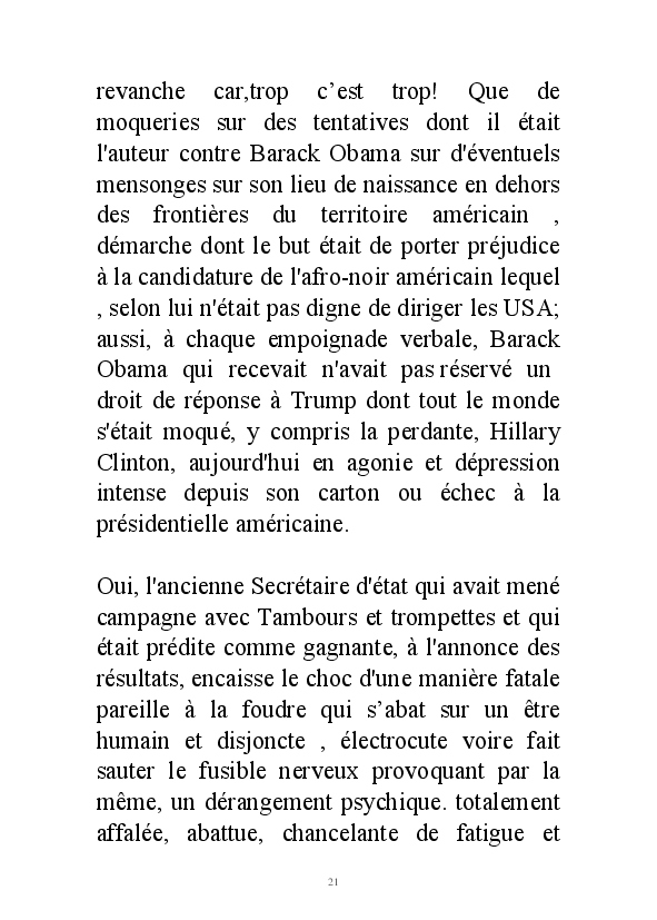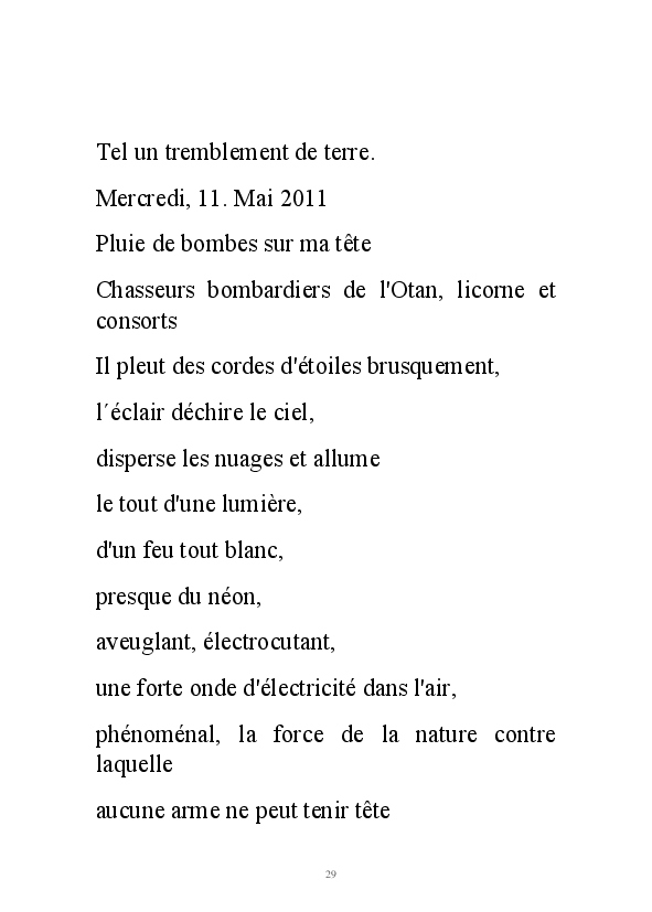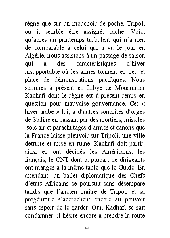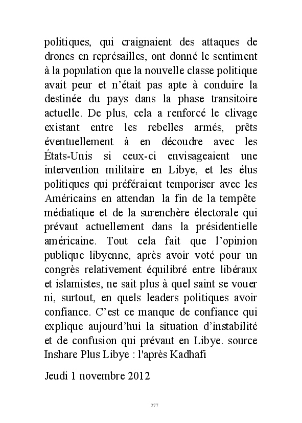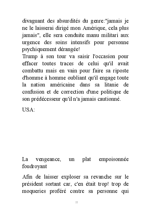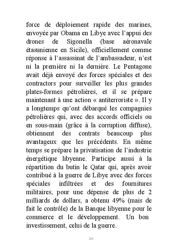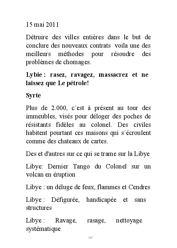 Des foyers de tensions se sont allumés ici et là depuis 2003 avec les guerres de Bush, contre Saddam, de Sarko-phage en Côte d'ivoire, Libye contre Kadhafi provoquant des flux migratoires, Organisations de paix, fabricants d'armes plongent dans l'arène des fauves, des armes pleuvent dans le ciel, résurgence du terrorisme Self-made; incendiaires d'hier, aujourd'hui anges de la paix, le tout, dans une dramaturgie démentielle, diabolique.Conséquence du carton de vote dans l'urne pour un bandit d'état, un va-t-en-guerre!