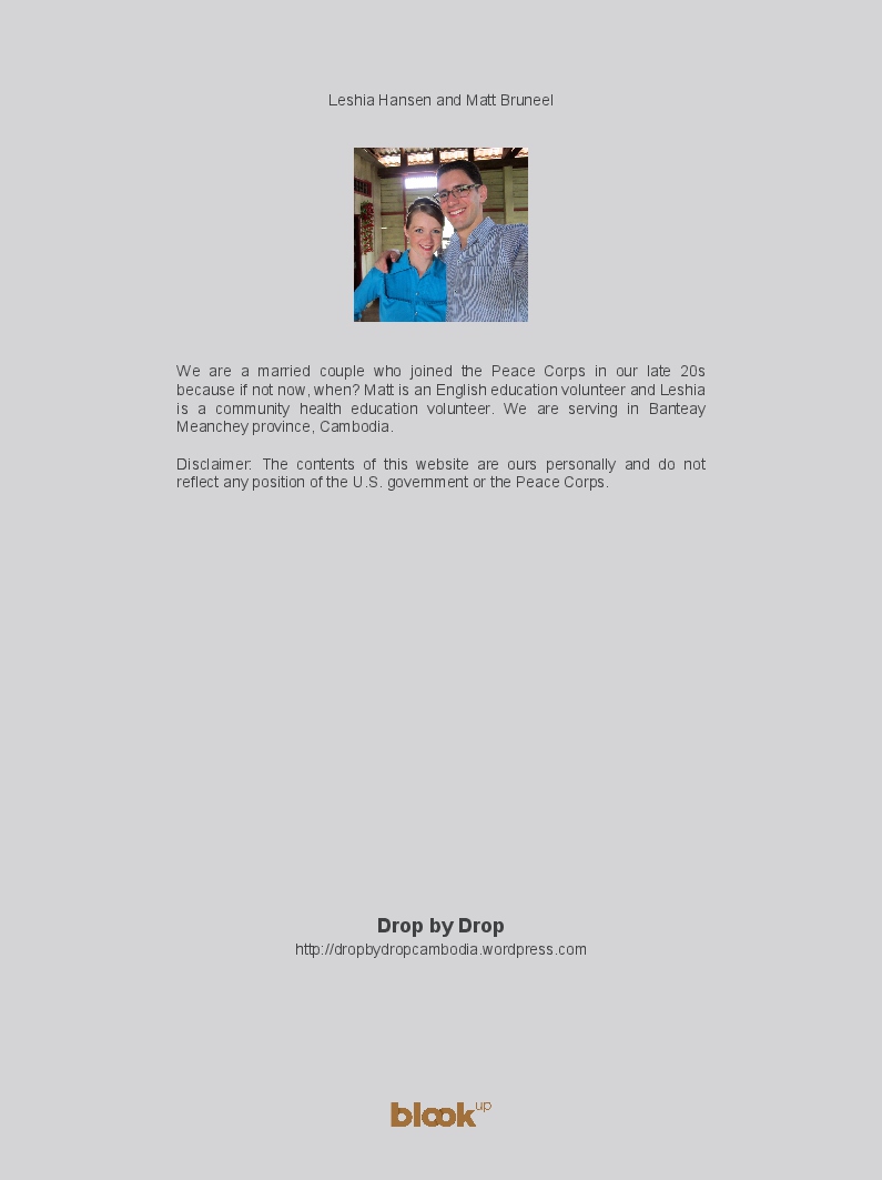 We are a married couple who joined the Peace Corps in our late 20s because if not now, when? Matt is an English education volunteer and Leshia is a community health education volunteer. We are serving in Banteay Meanchey province, Cambodia.