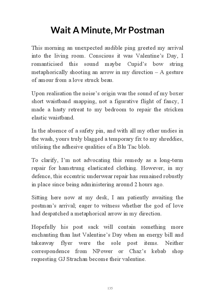‘Out of Retirement & Back’ is a collection of Gary Strachan’s blogs and essays written during Autumn and winter of 2023. Among these literary vignettes include whimsical campervan tales, the darkness of attending a good friends funeral, parody tales of visiting the horse races and gig reviews. Narratives from writing workshops and prose from an open mic night appear courtesy of the East Lancs Milk marketing Board.