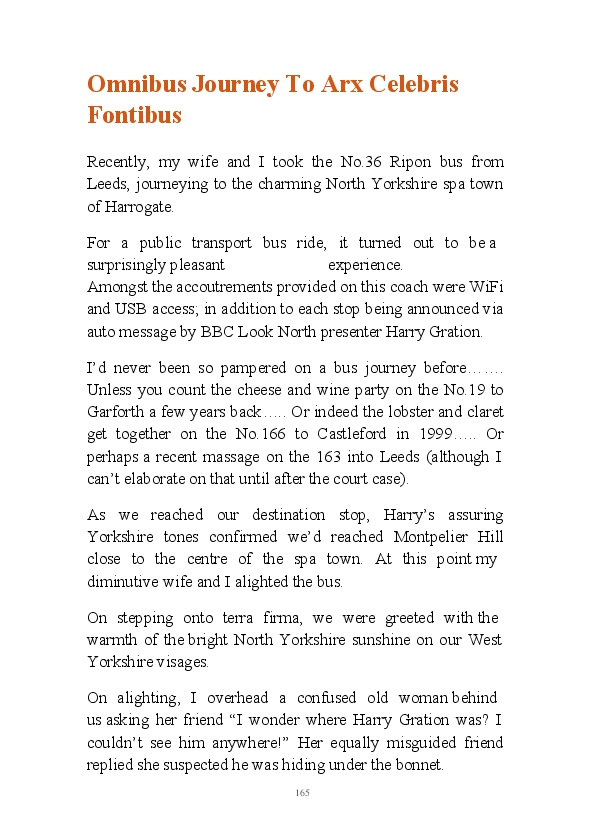 '15 Minutes of Fame' contains excerpts from the author's daily diary in April & May 2017. He has no idea why he titled this work by that name as he hasn't even had 1 minute of fame. The light hearted yarns within the book include visiting a posh place in Whitby, family get togethers and the unlikely tale of his brother inventing infra-red peanuts. Despite his depressive nature and inherent silliness, his wife loves him dearly.... Oh, hold on she's just said she thinks he's an arse!