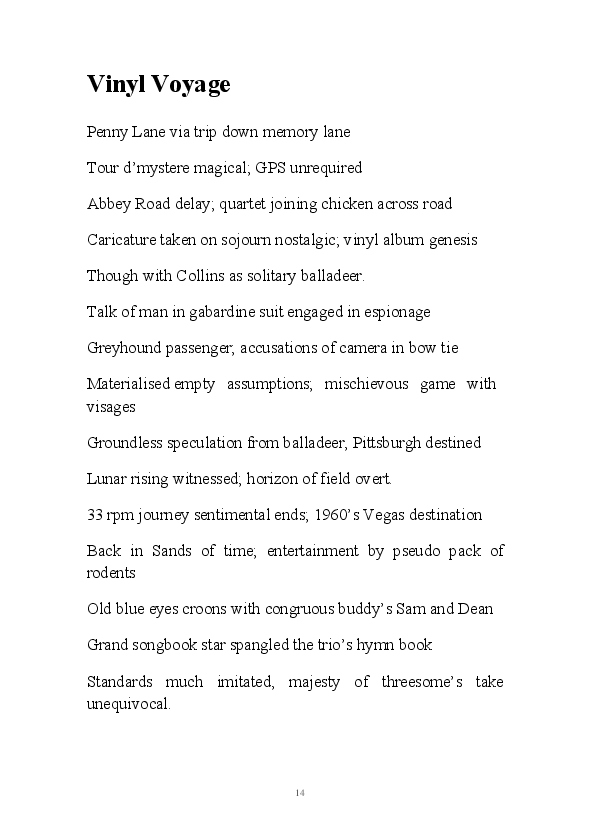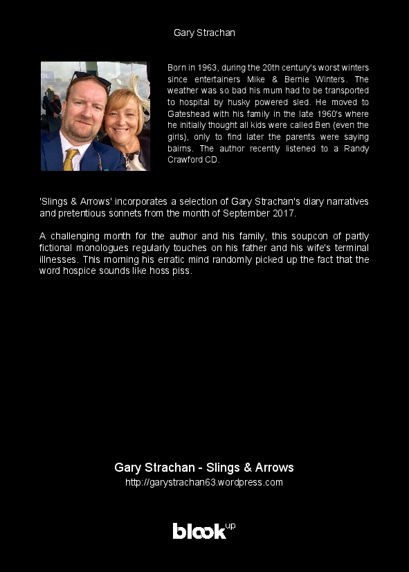 'Slings & Arrows' incorporates a selection of Gary Strachan's diary narratives and pretentious sonnets from the month of September 2017.