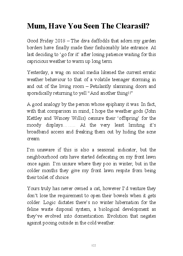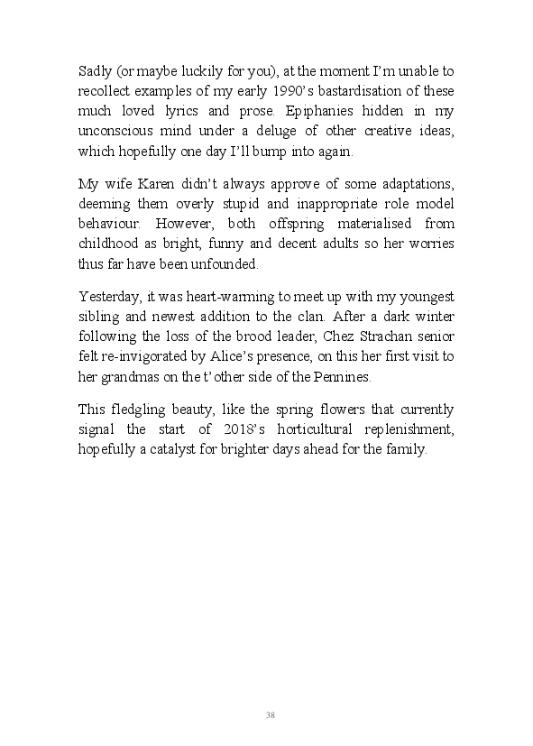 It's March 2018, Misty Water Coloured Memories is a literary synergy made up with component parts from the author's daily diary. Included in this tome are tales of Mr Strachan's junior cricket exploits, his heightist train trip to Newcastle, Wembley Trophy football skin sting in childhood and musings about his ex-local pub on Low Fell, The Gold Medal. Predominantly fictional, the yarns are a mixture of the light hearted and dark.