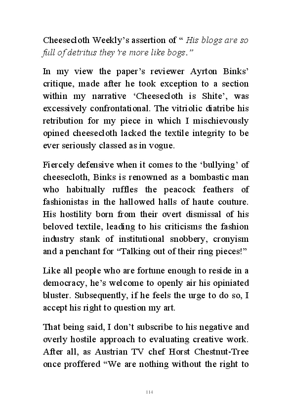 This is the author's 29th self-published book, although it nearly didn't happen after he suffered a cardiac arrest in early January. "Clear!!!" contains excerpts from the author's daily whimsical observations published on his website writesaidfred.org, including narratives written after his health scare. Despite his recent skirt with death and subsequent promises to exhibit a chirpier disposition, the writer's mother still opines his face is so miserable it could stop a clock.