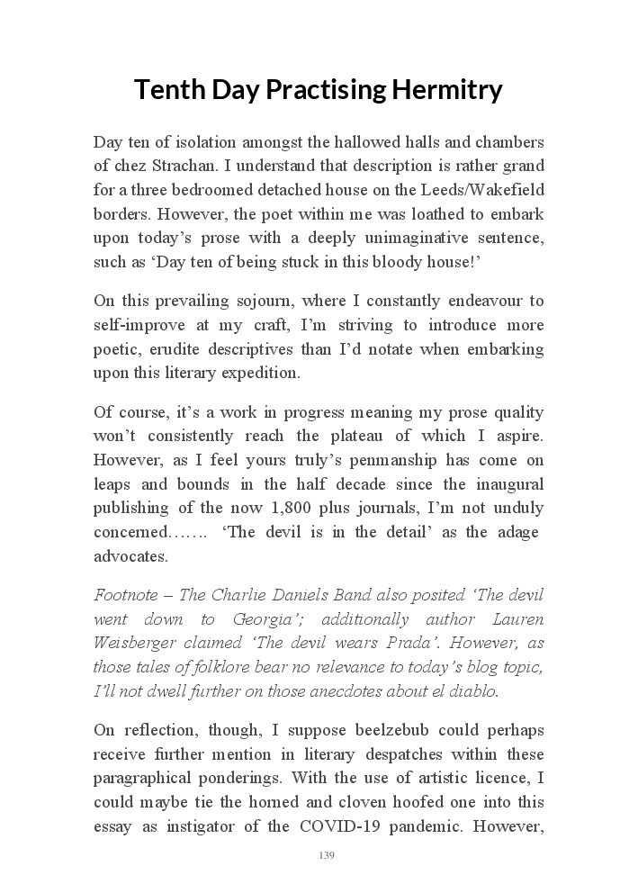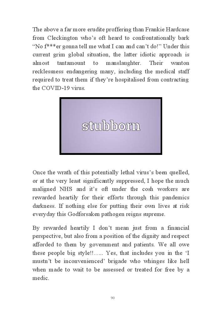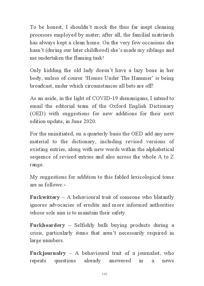 Corona Chronicles - Volume One affords exactly what it says on the tin, ie providing the authors daily journals penned in March 2020, a month where the pandemic COVID-19 took hold upon his UK homeland. This prose an amalgam of whimsy and the utter darkness at living with an indiscriminate pathogen steadfastly fixed on destroying live. Incidentally, that's the coronavirus he's referring to not his mother, who's house he now resides.