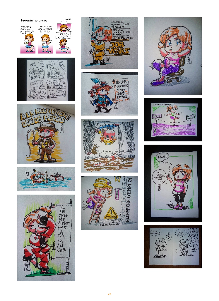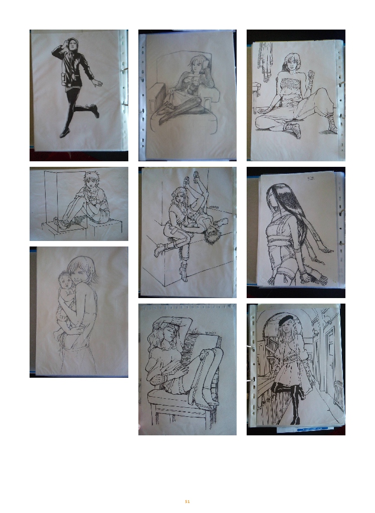 Les différents albums photos proposés en ligne font office de book pour faire connaître mon style graphique, mes techniques de dessin et ma vision du monde.