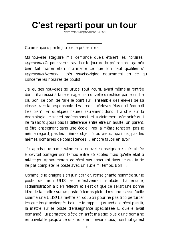 Toujours en poste à l'école.