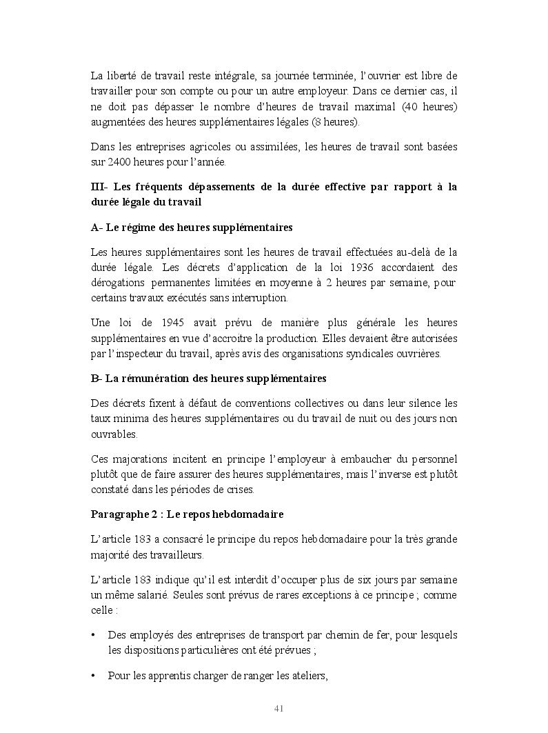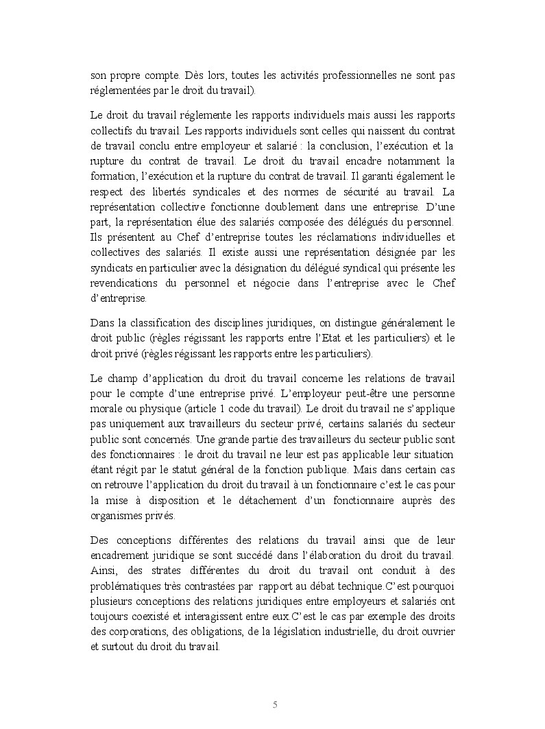 Le droit du travail réglemente les rapports individuels mais aussi les rapports collectifs du travail. Les rapports individuels sont celles qui naissent du contrat de travail conclu entre employeur et salarié : la conclusion, l’exécution et la rupture du contrat de travail. Le droit du travail encadre notamment la formation, l’exécution et la rupture du contrat de travail. Il garanti également le respect des libertés syndicales et des normes de sécurité au travail. La représentation collective fonctionne doublement dans une entreprise.