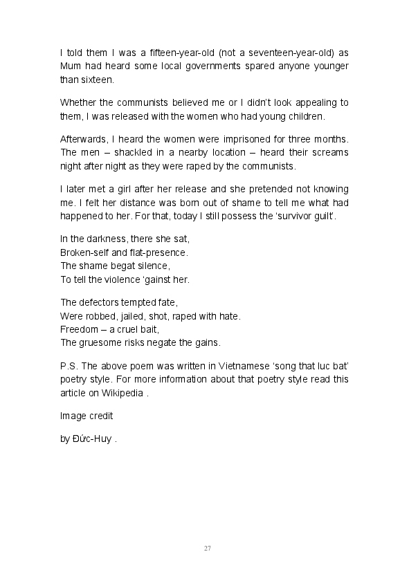 hiMe writes about her life in Vietnam during and post the Vietnam war as well as in Australia as a refugee and a migrant. hiMe likes to include a small poem of various styles to each of her posts.