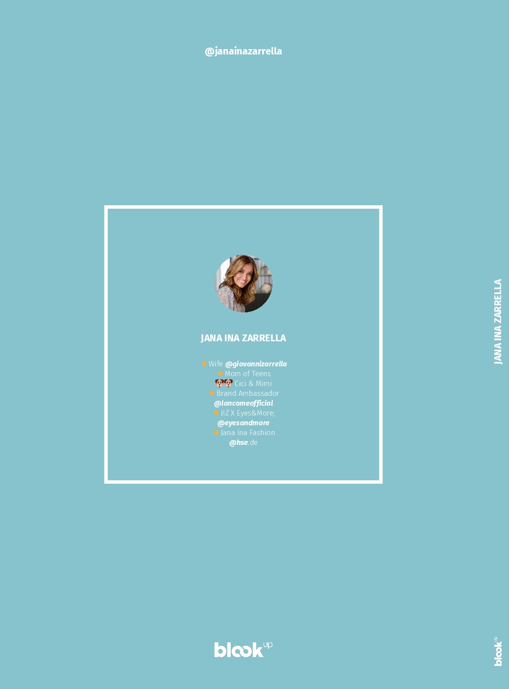 Jana Ina ist als Fernsehmoderatorin und Model bekannt und hat eine große Präsenz auf Instagram, wo sie Einblicke in ihr Familienleben gibt. Ihre Inhalte sind eine Mischung aus Mode, Beauty und Szenen aus dem Leben mit ihren Kindern und ihrem Ehemann.