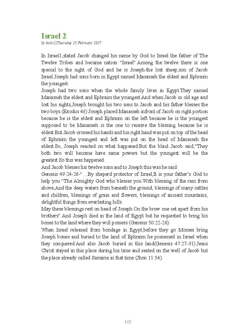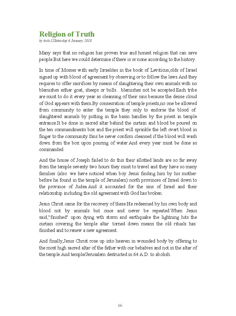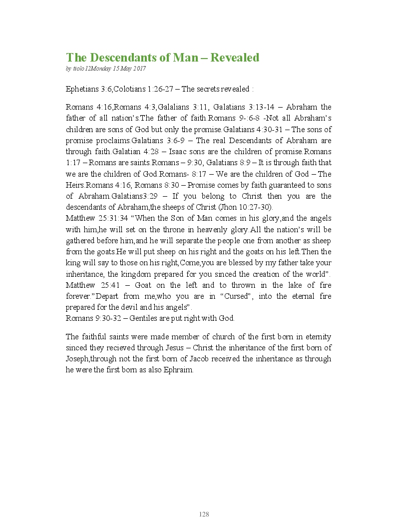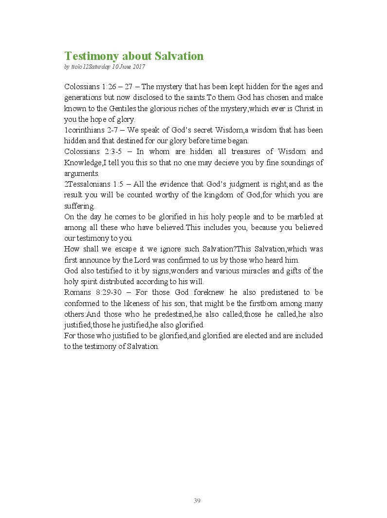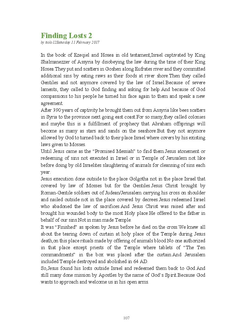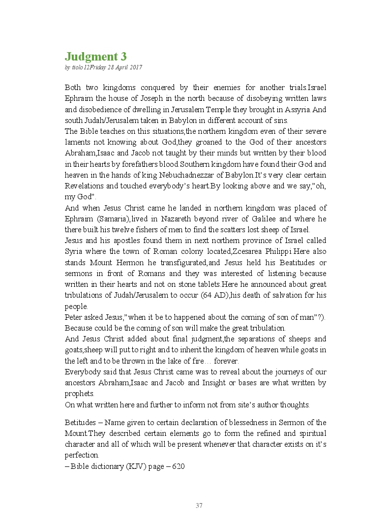 Bible Prophecy Interpretation- about the love story between God and his people.How they separated from God.First commandments made broken because of serious sins committed against God But because of God love and compassion for his children,he find his losts which scatters among nations through out the world and created the new commandments slightly for new people.