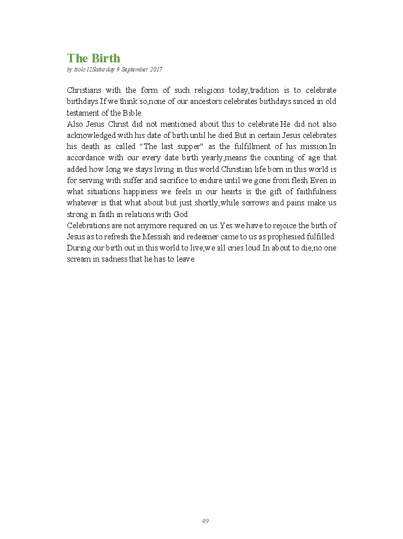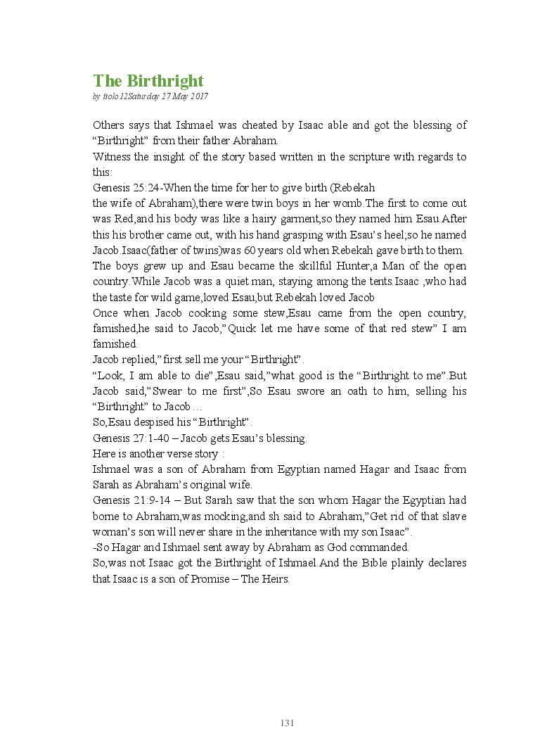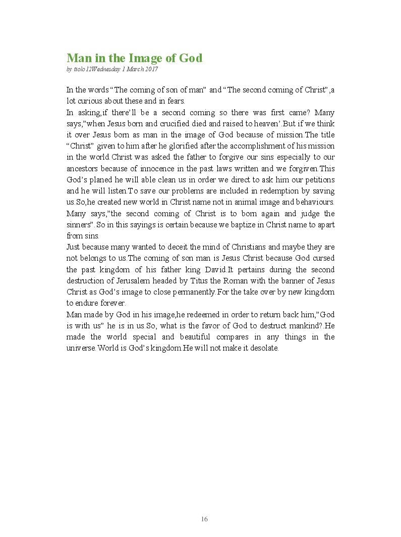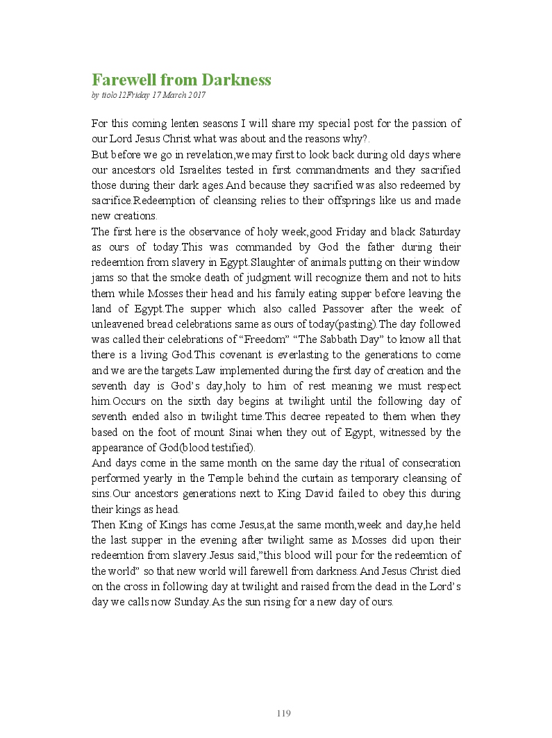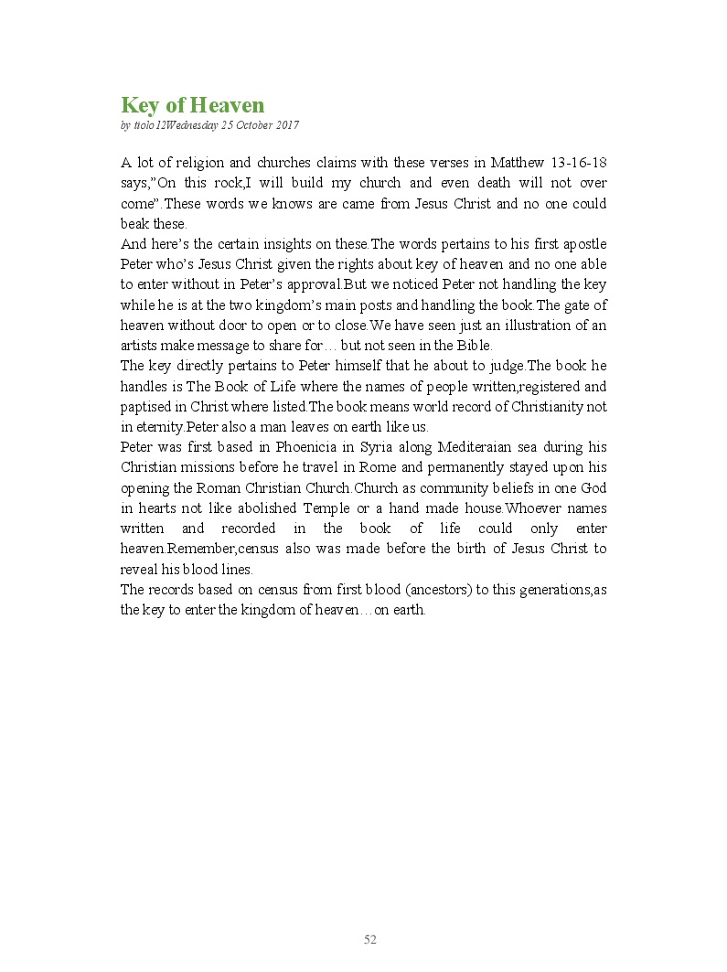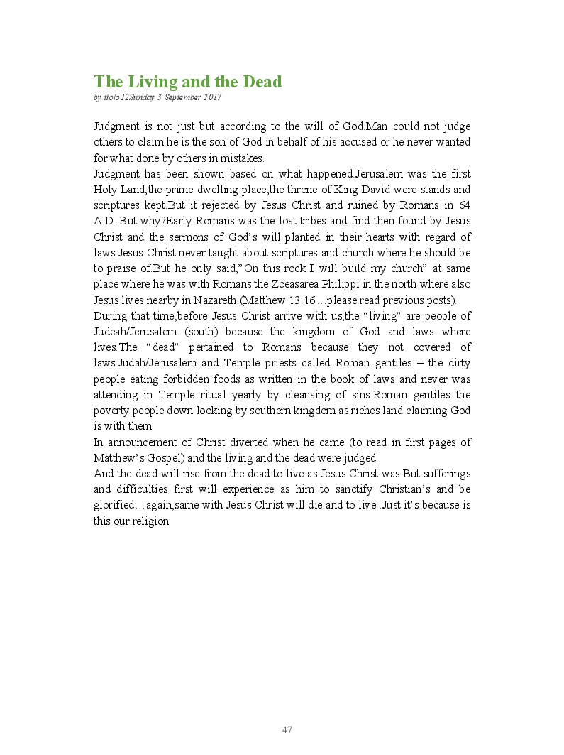 Bible Prophecy Interpretation- about the love story between God and his people.How they separated from God.First commandments made broken because of serious sins committed against God But because of God love and compassion for his children,he find his losts which scatters among nations through out the world and created the new commandments slightly for new people.