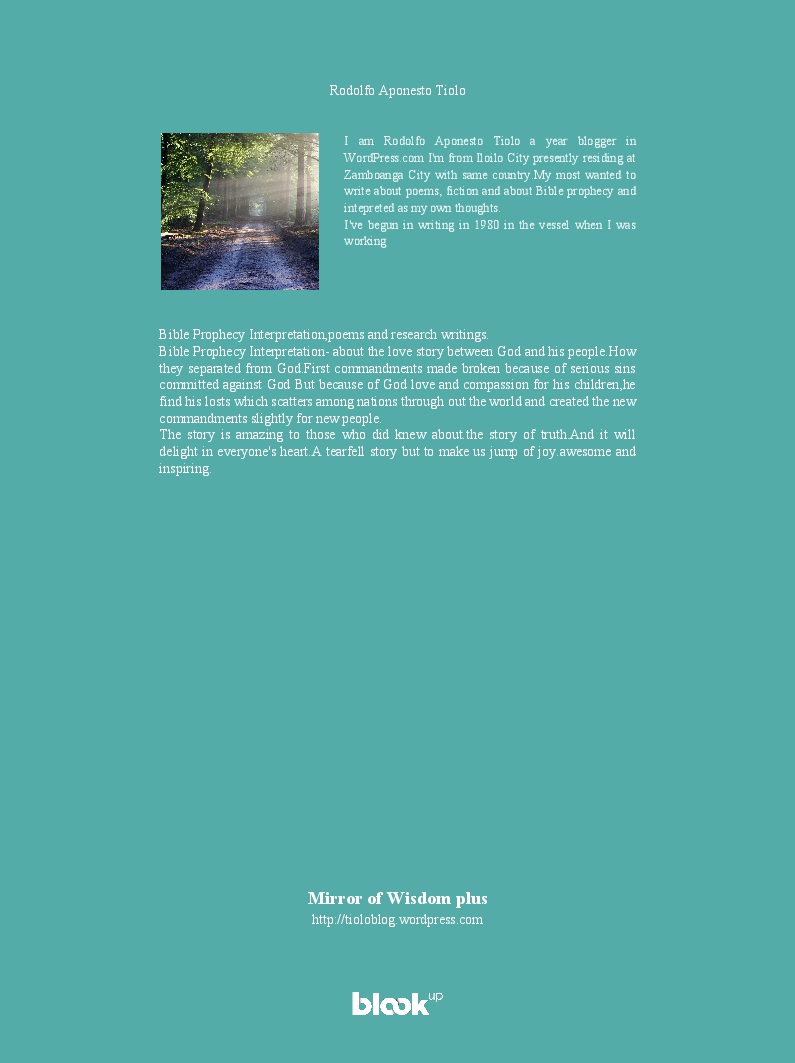Rodolfo Aponesto Tiolo made the blook of their their blog Wordpress ! Support their creativity by buying their blook or create your own now on BlookUp!