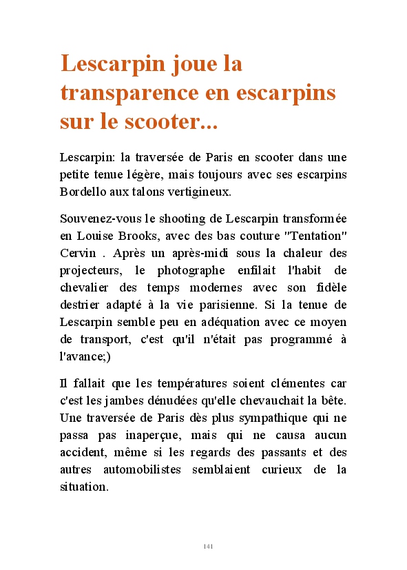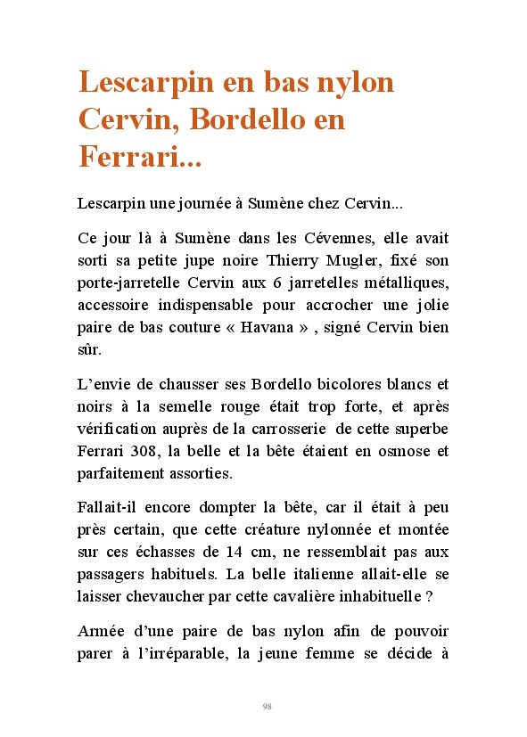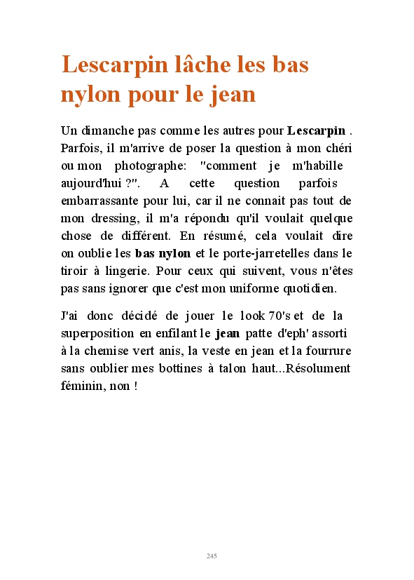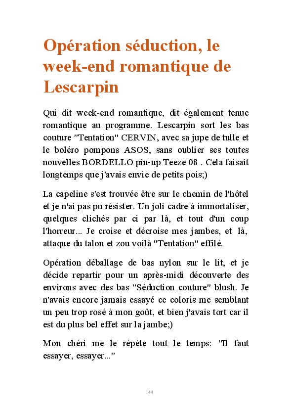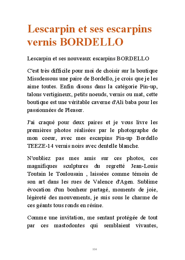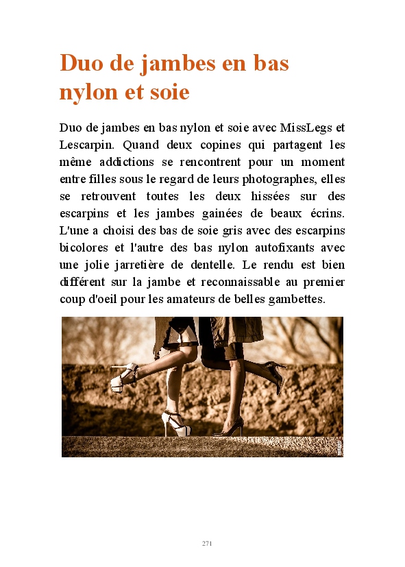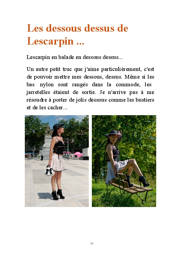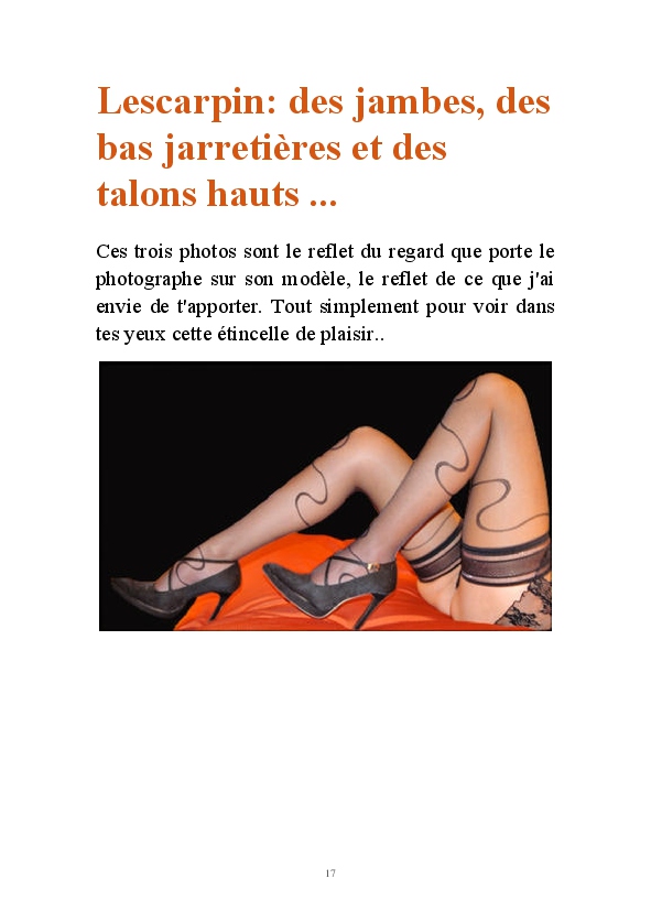 Partez à la découverte d'un univers au féminin avec Lescarpin. Des visuels signés Stéphane Perruchon, sans qui le blog n'aurait jamais vu le jour. Vous pourrez découvrir l'évolution sur 10 ans de Lescarpin. Comment des bas auto-fixant, elle a fini par succomber au charme des bas jarretelles et plus particulièrement au bas nylon qui sont devenus des accessoires de féminité au quotidien. Lescarpin ne joue pas un rôle, c'est une femme épanouie qui assume sa féminité au quotidien.