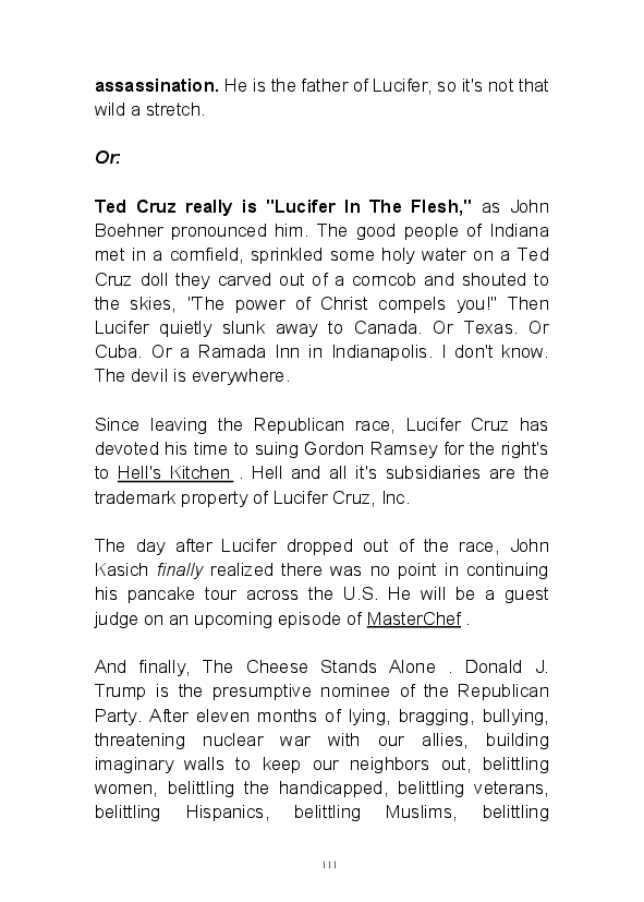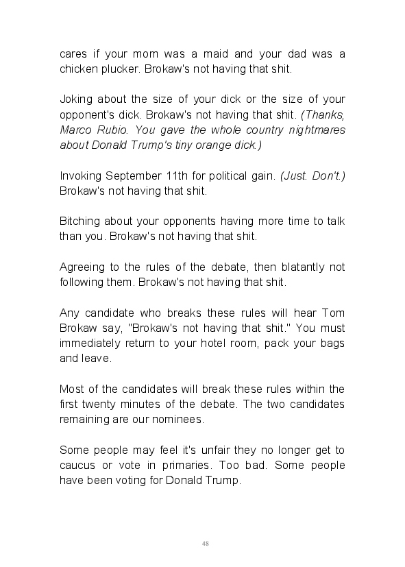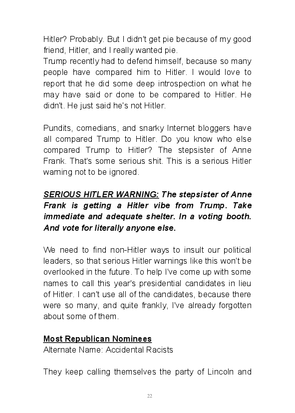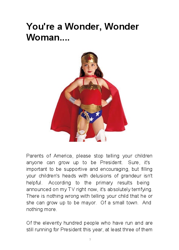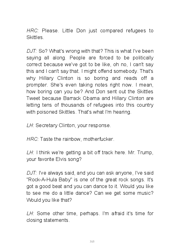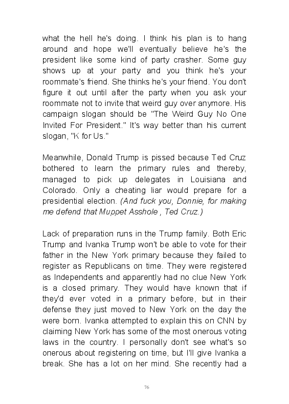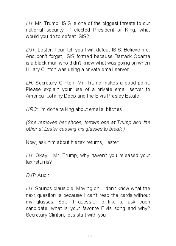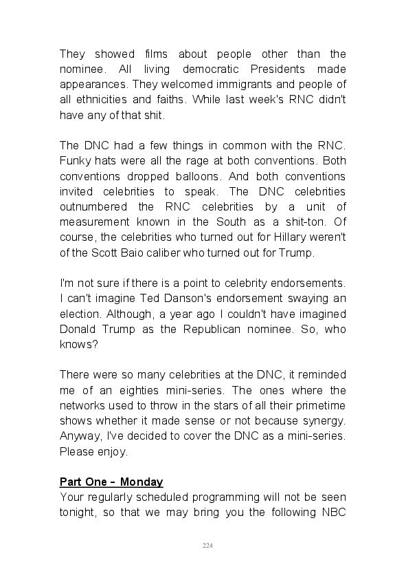 My vote LITERALLY does not count. If you understand anything about the Electoral College I might as well go into the voting booth and write lewd comments all over the walls. [Still an option.] "Third" parties and independent candidates are noble, but so was every redshirt officer aboard the Starship Enterprise. If you don't know what to do, VOTE FOR PEDRO! - Josh