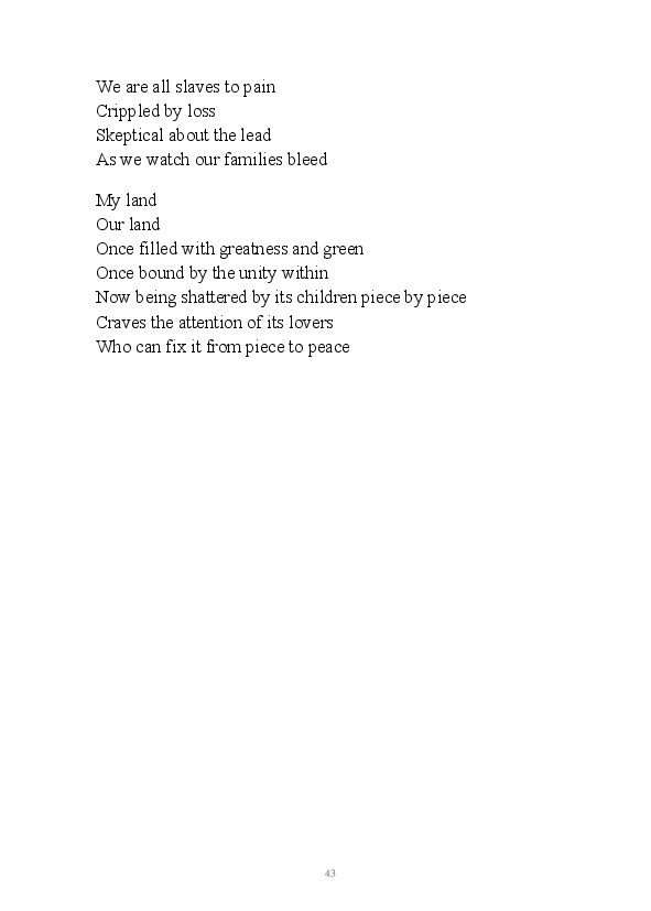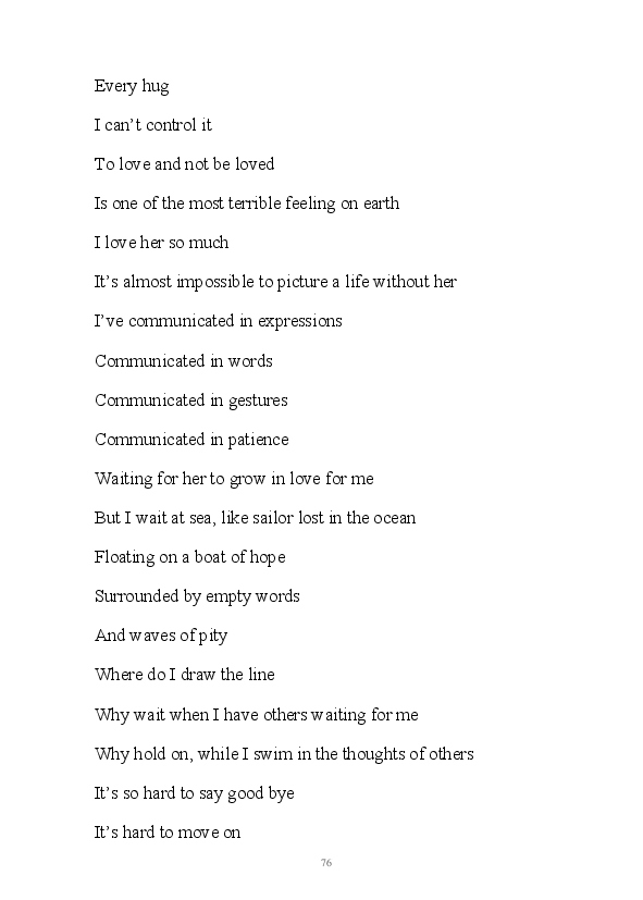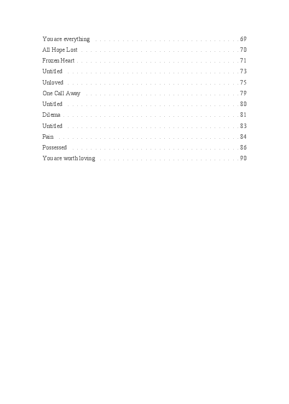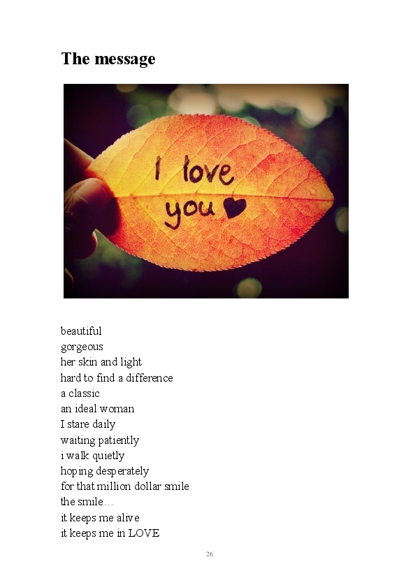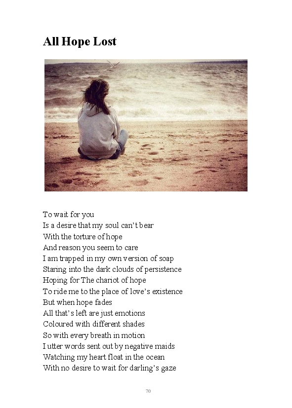 A collection of poems that describe, romance, love, passion, hope and pain.