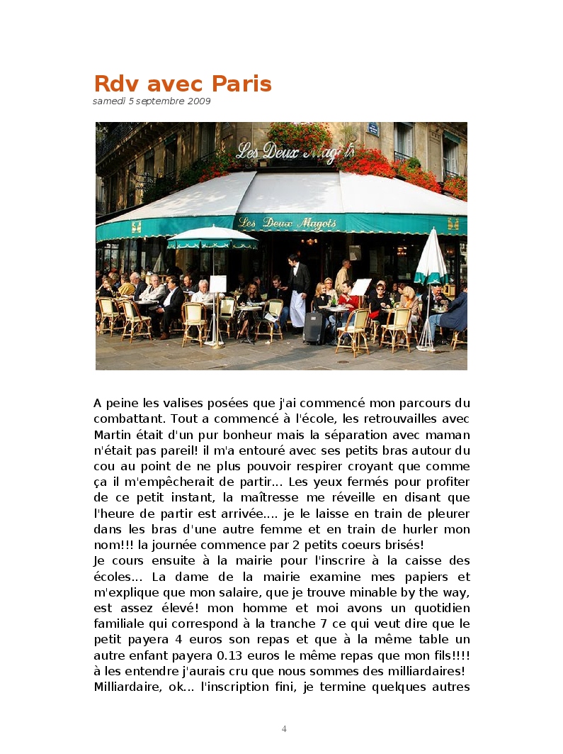 Du fond de ma crise existentielle de working mother: entre l'idée du retour au boulot, l'inscription scolaire de mon fils en maternelle, les papiers administratifs, la gestion de la garde de mon fils après l'école et mon paquet de clopes, j'ai voulu partager mes pensées ainsi que mes journées!