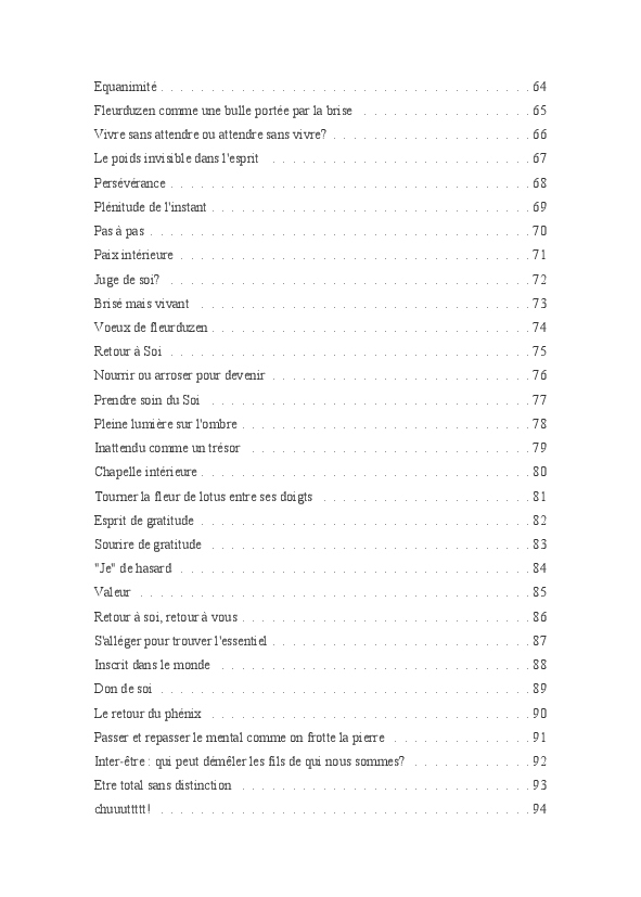 Cet e-book est une entrée en matière, il égrène les différents articles écrits de juin 2012 à décembre 2014 sur le blog fleurduzen.
