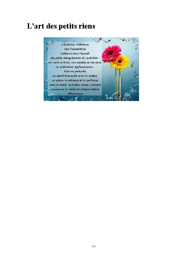 Cette sélection d'articles donne un aperçu de quelques années à l'écoute de l'essentiel, des maximes imagées qui porte à méditer et se souvenir que là, au fond de nous, tout est révélé.