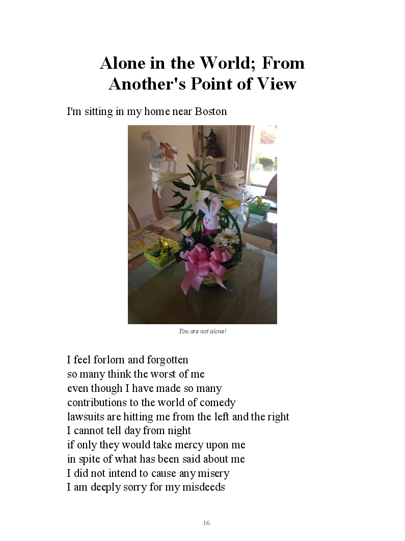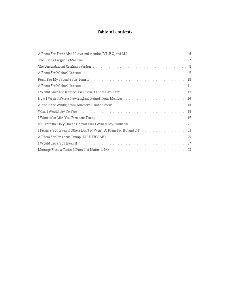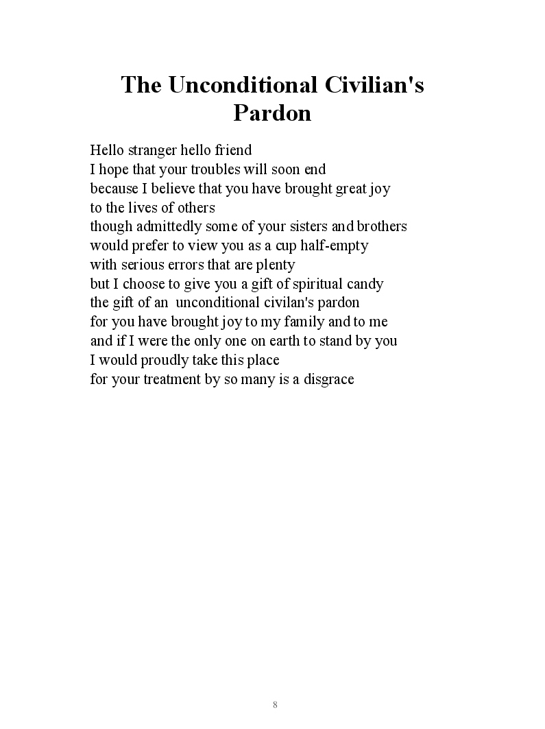 This blook is a tribute to all of the current political and public figures whom the author believes has been cruelly treated as well as humiliated in one way or the other. It is the author's hope that the poetry in this blog will encourage and give hope and inspiration to these people and others