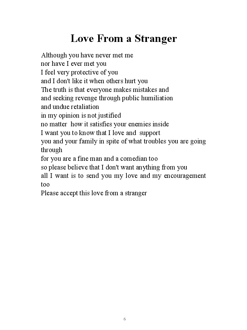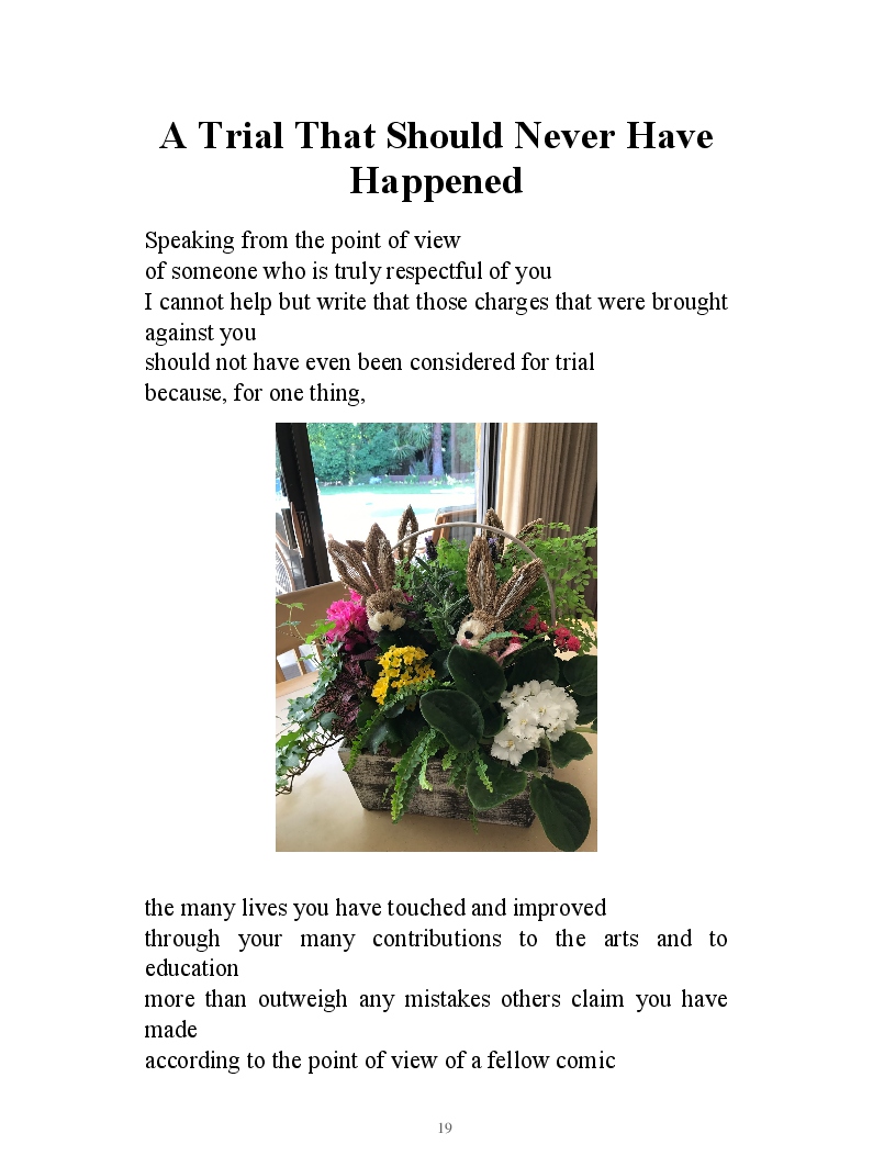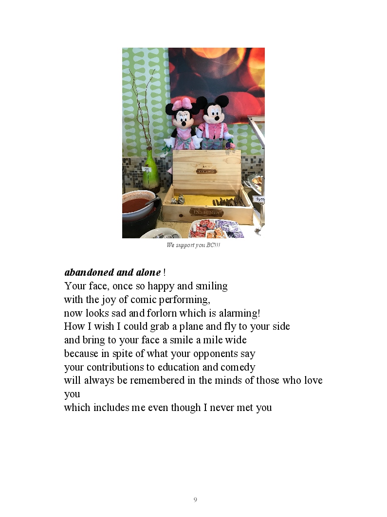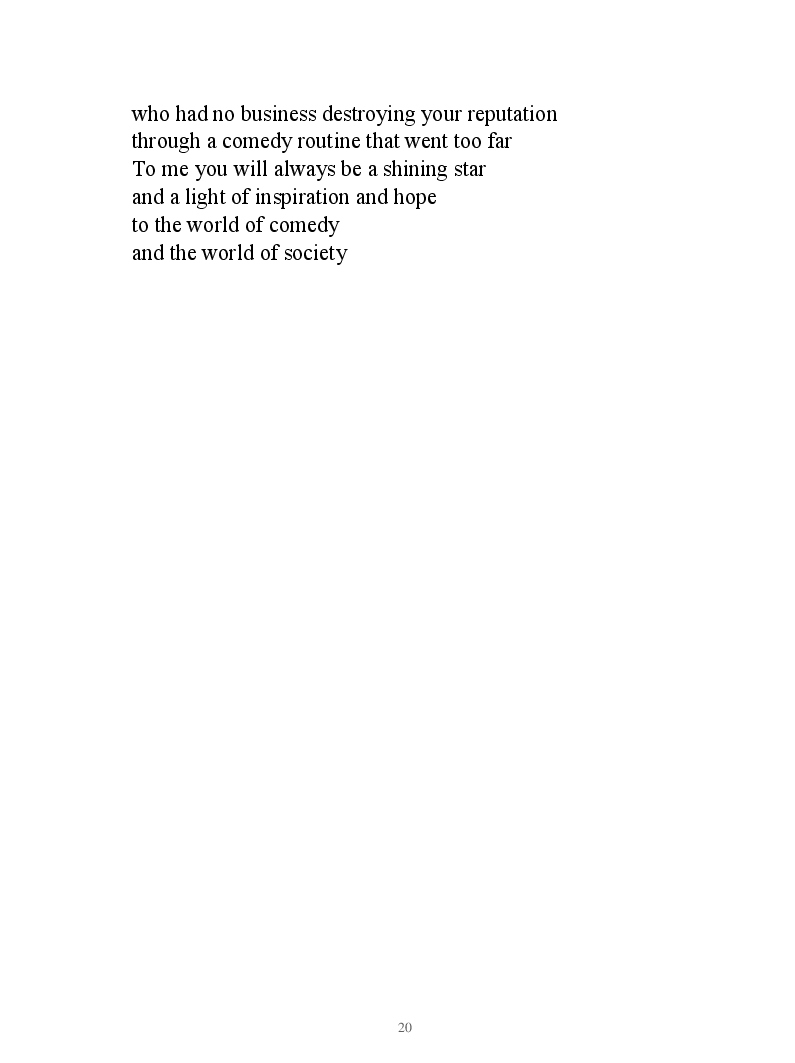 This blook contains poetry written for Bill Cosby, President Trump, and others who have been publicly humiliated and hurt with the intent of encouraging and bringing hope to them and others and lifting all from despair .