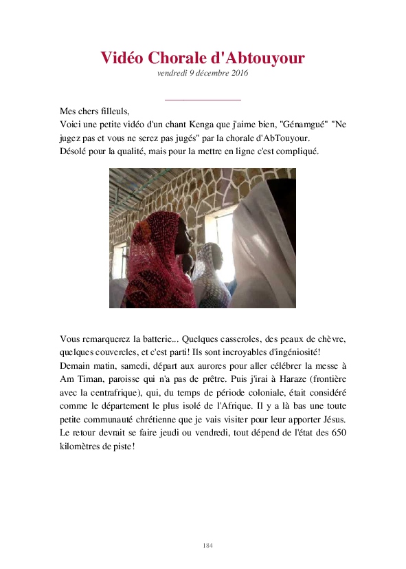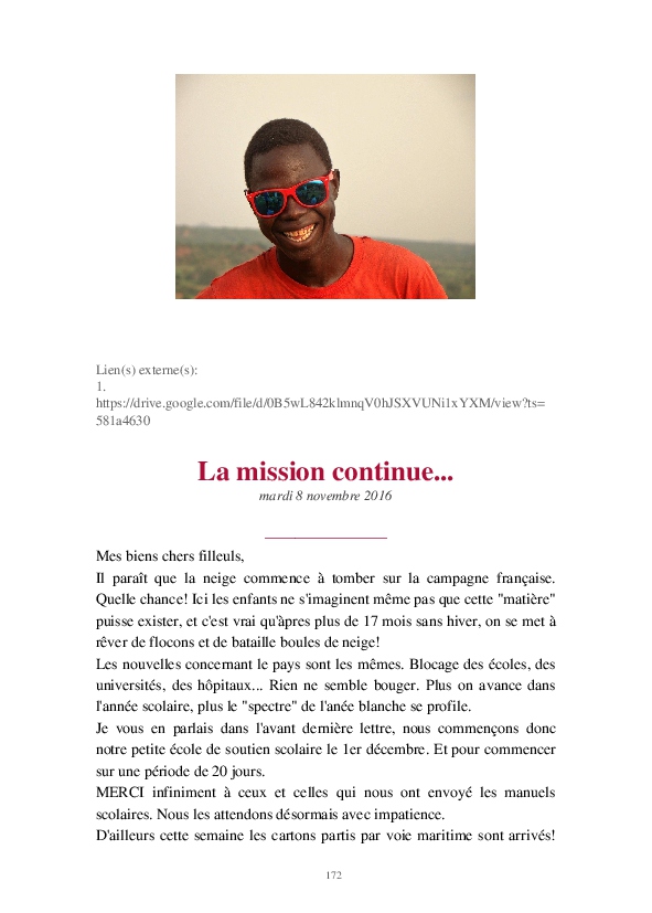 Ces lettres écrites "sur le vif" pour un blog, n'ont pas été relues avant impression. L'auteur s'excuse par avance pour les fautes et les coquilles qui ne manqueront pas de rendre le récit plus réaliste :-) !